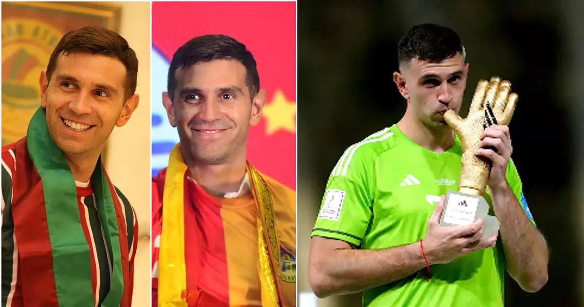Emiliano Martinez in Mohun Bagan and East Bengal jersey