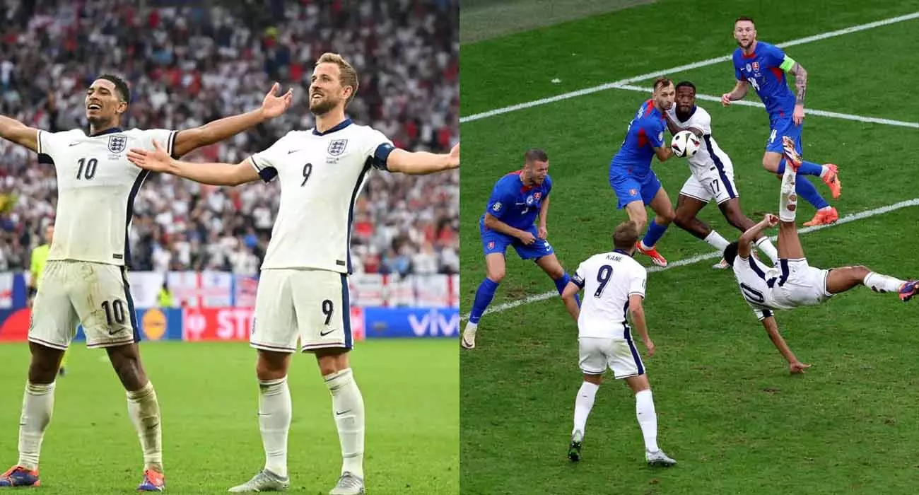 ഗെൽസെൻകിർചെൻ: തോൽവിയുടെ വക്കിൽനിന്ന് വീരോചിതം തിരിച്ചെത്തി ഇംഗ്ലണ്ട് യൂറോ കപ്പ് ക്വാർട്ടറിൽ. അത്യന്തം ആവേശകരമായ പ്രീക്വാർട്ടറിൽ സ്ലൊവാക്യയെ ഒന്നിനെതിരെ രണ്ട് ഗോളുകൾക്ക് തകർത്താണ് അവസാന എട്ടിലേക്ക് മാർച്ച് ചെയ്തത്. സ്ലൊവാക്യ വിജയമുറപ്പിക്കാൻ നിമിഷങ്ങൾ ബാക്കിനിൽക്കെ തകർപ്പൻ ബൈസിക്കിൾ കിക്കിലൂടെ ഇഞ്ചുറി സമയത്തിന്റെ അവസാന മിനിറ്റിൽ ജൂഡ് ബെല്ലിങ്ഹാം രക്ഷക റോളിൽ അവതരിക്കുകയായിരുന്നു. എക്സ്ട്രാ സമയത്തേക്ക് നീണ്ട മത്സരത്തിൽ ഹാരി കെയിനിലൂടെ രണ്ടാം ഗോളും സ്വന്തമാക്കി നിലവിലെ റണ്ണേഴ്സപ്പായ ത്രീലയൺസ് ക്വാർട്ടർ പ്രവേശനമുറപ്പിച്ചു. ഇവാൻ ഷ്രാൻസ് ആദ്യ പകുതിയിൽ സ്ലൊവാക്യക്കായി ഗോൾ നേടി.