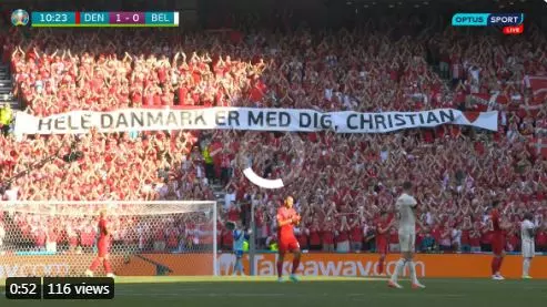 ''ക്രിസ്റ്റ്യന്, മുഴുവന് ഡെന്മാര്ക്കും നിങ്ങള്ക്കൊപ്പമുണ്ട്'' എറിക്സണ് ആദരവുമായി ഗ്യാലറിയില് ആരാധകര്, വീഡിയോ