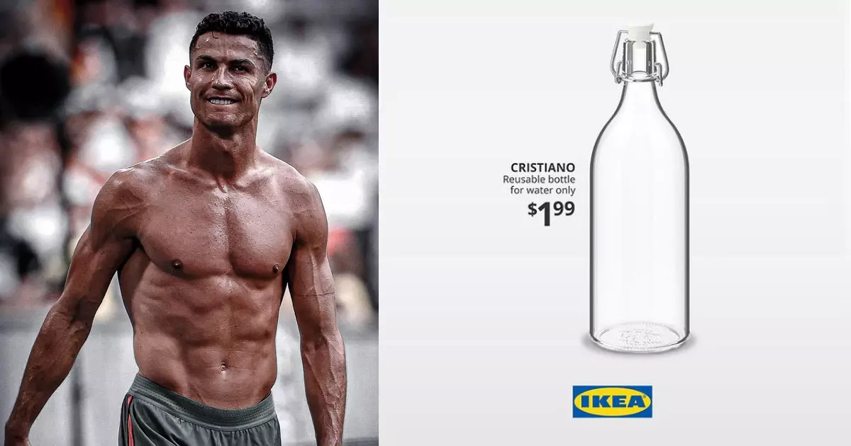 ഇപ്പോഴിതാ ക്രിസ്റ്റ്യാനോയുടെ നടപടിയെ കച്ചവടാവശ്യത്തിനായി ഉപയോഗിച്ചിരിക്കുകയാണ് സ്വീഡിഷ് കമ്പനിയായ 'ഐകിയ'. ക്രിസ്റ്റ്യാനോയുടെ പേരില് വാട്ടര്ബോട്ടില് പുറത്തിറക്കിയ ഐകിയ ഒന്നേ ദശാംശം 99 ഡോളറിനാണ് അവ വില്പ്പന നടത്തുന്നത്. 147 രൂപയാകും കുപ്പിയുടെ ഇന്ത്യന് വില. പുനരുപയോഗിക്കാന് കഴിയുന്ന വെള്ളകുപ്പികളില് 'വെള്ളം കുടിക്കാന് മാത്രം' എന്ന് എഴുതിയാണ് ഐകിയയുടെ പരസ്യം.