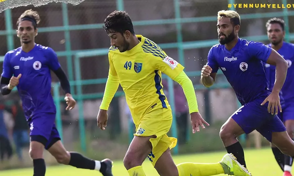 ആദ്യ പകുതിയിൽ ഒന്നാം നമ്പർ ഗോൾകീപ്പർ ആൽബിനോ ഗോമസ്, സഞ്ജീവ് സ്റ്റാലിൻ, സന്ദീപ്, ഹക്കു, ജസ്സൽ കാർണൈറോ, പ്യൂട്ടിയ, ഖബ്ര, സൈത്യാസെൻ, പ്രശാന്ത്, ശുഭഘോഷ്, മഹേഷ് എന്നിവരാണ് ബ്ലാസ്റ്റേഴ്സ് നിരയില് ഇറങ്ങിയത്. എന്നാൽ പേരു കേട്ട ബ്ലാസ്റ്റേഴ്സിന്റെ പെരുമയെ ഭയക്കാതെ മികച്ച പ്രകടനമാണ് ബിനു ജോർജിന്റെ കുട്ടികൾ പുറത്തെടുത്തത്.