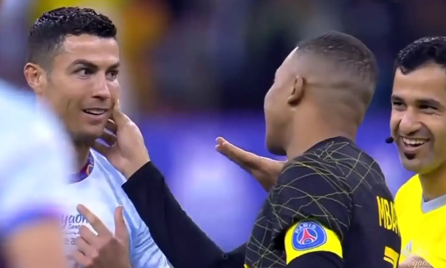 എന്തെങ്കിലും പറ്റിയോ? റോണോയുടെ മുഖത്തെ പരിക്ക് പരിശോധിച്ച് എംബാപ്പെ - വീഡിയോ