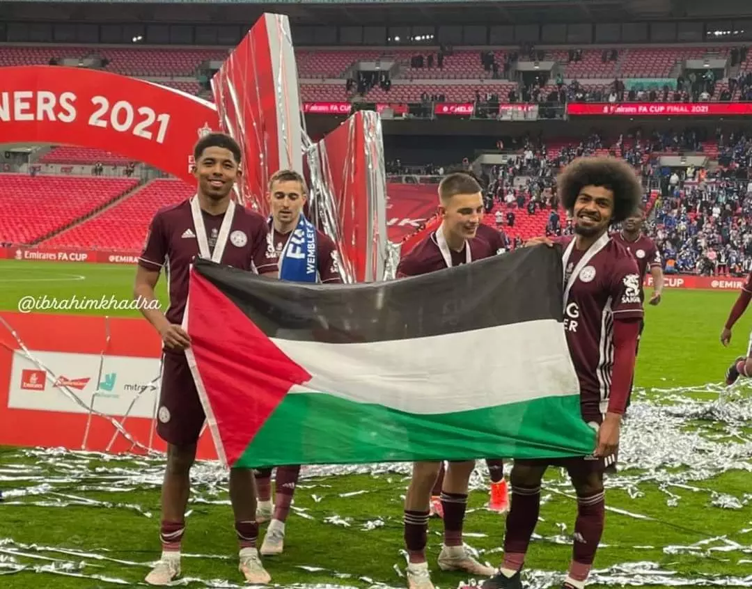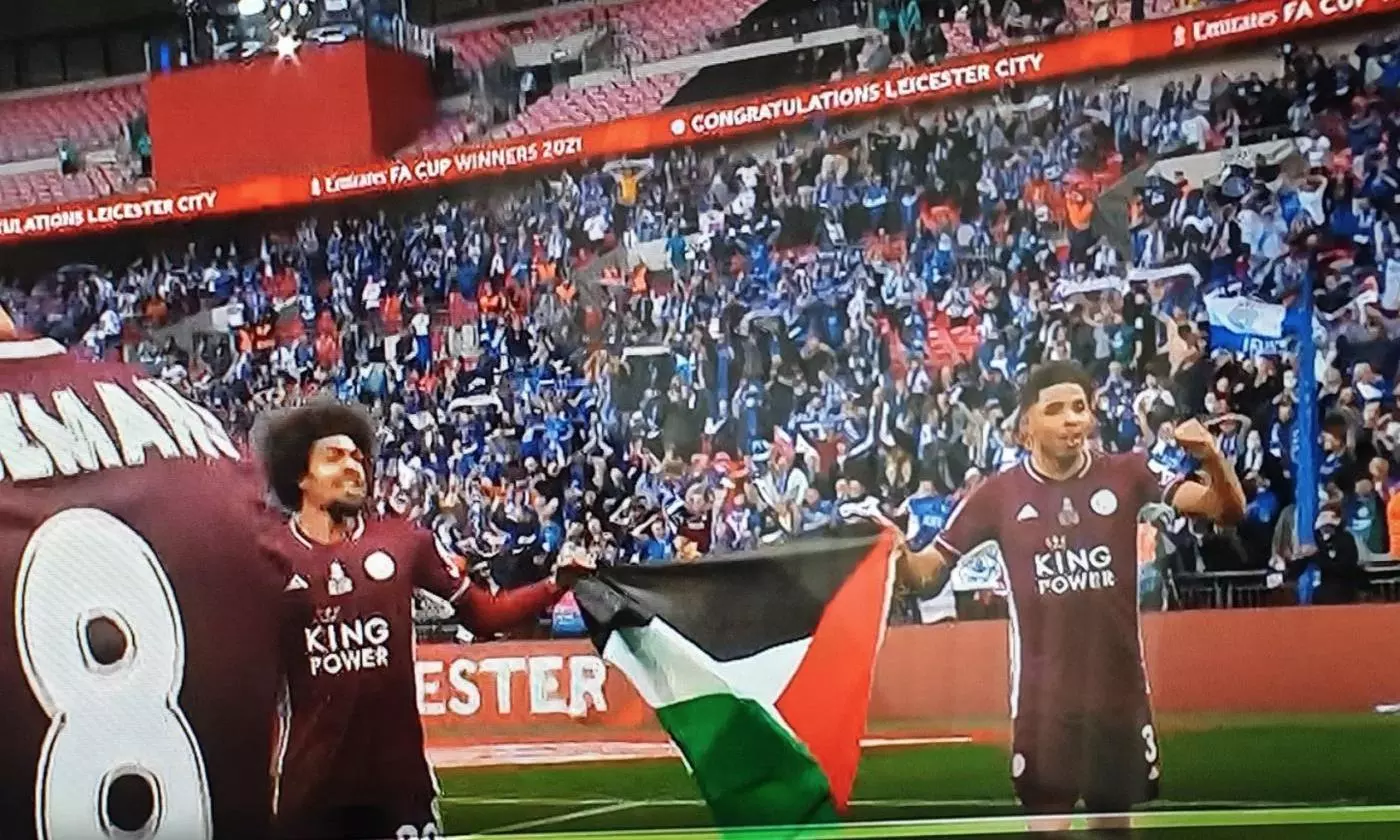 ലെസ്റ്റർ സിറ്റി കളിക്കാര് പലസ്തീൻ പതാക ഉയർത്തി എഫ്.എ കപ്പ് ഫൈനൽ ജയം ആഘോഷിച്ചു. 20000 കാണികളെ സാക്ഷി നിര്ത്തിയാണ് ലെസ്റ്റർ സിറ്റിയുടെ കളിക്കാരായ ഹംസ ചൌധരിയും വെസ്ലി ഫോഫാനയും ചെൽസിക്കെതിരായ വിജയാഘോഷത്തിനിടെ പലസ്തീൻ പതാക ഉയർത്തിയത്. കഴിഞ്ഞ ദിവസങ്ങളിൽ ബോംബാക്രമണങ്ങളും വ്യോമാക്രമണങ്ങളും ഇസ്രായേൽ സേനയിൽ നിന്നുള്ള പീഡനങ്ങളും നേരിട്ട പലസ്തീനികളുമായുള്ള ഐക്യദാര്ഢ്യ പ്രകടനമായിരുന്നു ഈ നീക്കം.