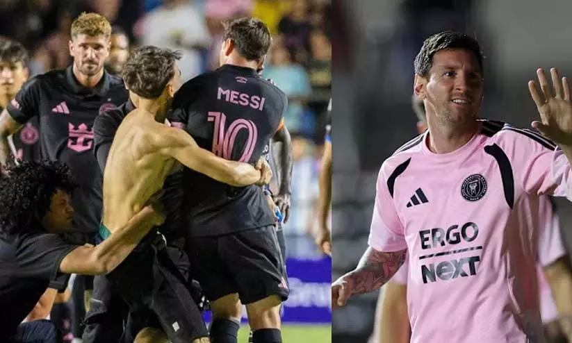 ലയണൽ മെസ്സിയെ തള്ളിയിട്ട് ആരാധകൻ; ഇന്റർ മയാമിക്കായി സൗഹൃദ മത്സരം കളിക്കവേയാണ് സംഭവം