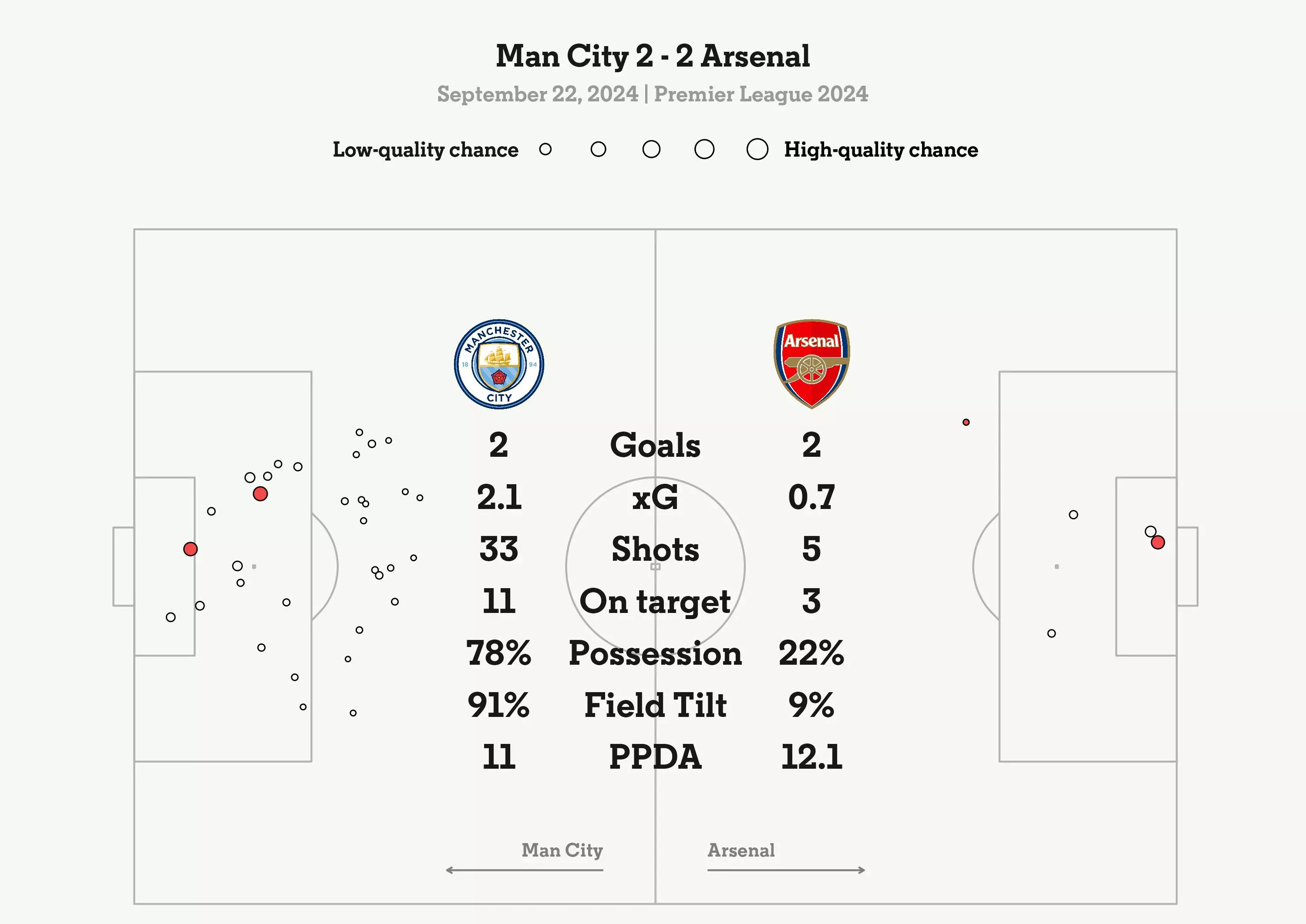 |പത്തുപേരായി ചുരുങ്ങിയിട്ടും എതിരാളികളുടെ തട്ടകമായ ഇത്തിഹാദിൽ നിന്നും സമനിലയുമായി മടങ്ങുന്ന ആർസനൽ. അൾട്രാ ഡിഫൻസീവിലേക്ക് മാറി എങ്ങനെയെങ്കിലും ജയിക്കുകയെന്ന ആർസനലിന്റെ മോഹം അവസാന നിമിഷം തകർത്ത മാഞ്ചസ്റ്റർ സിറ്റി.. 2-2ന് സമനിലയിൽ അവസാനിച്ച ഈ മത്സരത്തിൽ ആരാണ് ചിരിക്കുന്നത്? വളരെ കോംപ്ലിക്കേറ്റഡായ ഒരു ചോദ്യമാണിത്. അവരവരുടെ ഇഷ്ടങ്ങൾക്കും വിശകലനങ്ങൾക്കും അനുസരിച്ച് വിലയിരുത്താവുന്ന മത്സരമാണ് ഇന്നലെ ഇത്തിഹാദിൽ കൊടിയിറങ്ങിയത്.