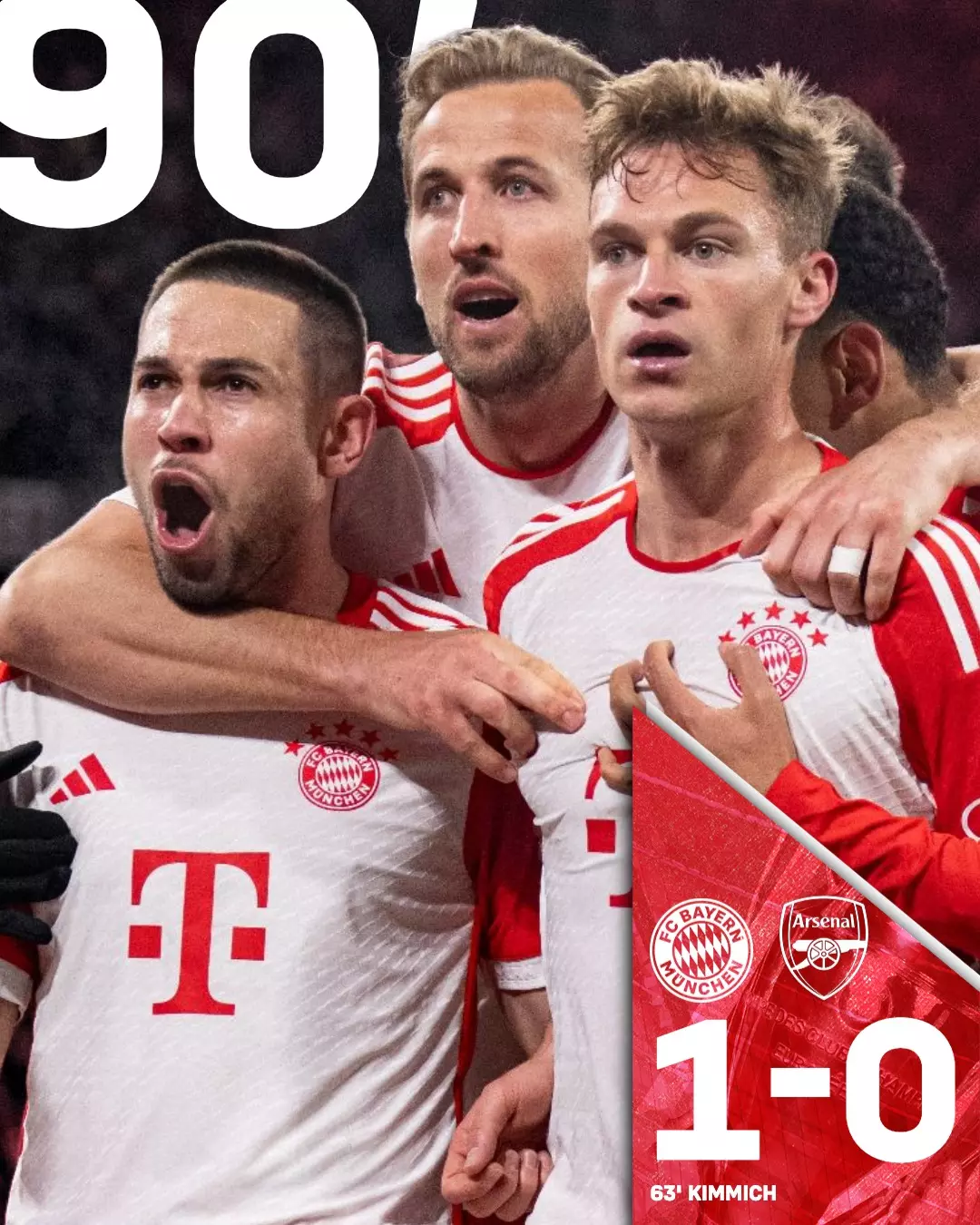 മറുവശത്ത് മ്യൂണിക്കിൽ ഒരു വിജയം സ്വപ്നം കണ്ടിറങ്ങിയ ആഴ്സനലിന്റെ പ്രതീക്ഷകൾ തച്ചുടച്ച് ബയേൺ സെമിയിലേക്ക് മാർച്ച് ചെയ്യുകയായിരുന്നു.63ാം മിനുറ്റിൽ ജോഷ്വ കിമ്മിച്ചാണ് ബയേണിനായി സ്കോർ ചെയ്തത്. എമിറേറ്റ്സിൽ നടന്ന ആദ്യ മത്സരത്തിൽ ഇരു ടീമുകളും രണ്ടുഗോളുകൾ നേടി സമനിലയിൽ പിരിഞ്ഞിരുന്നു.