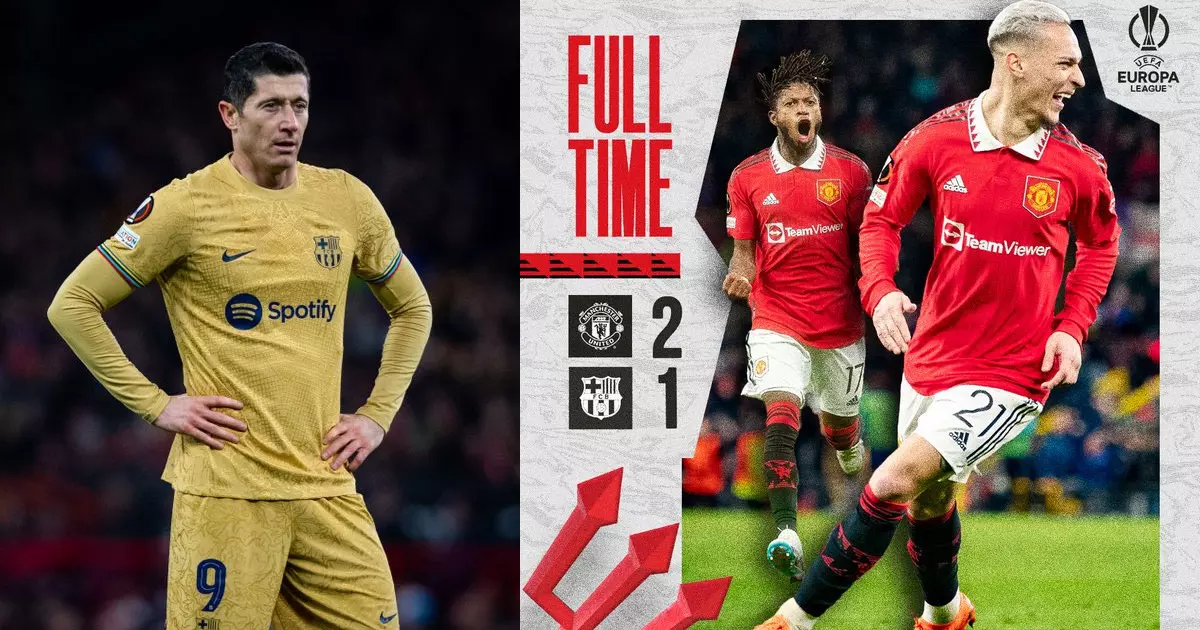 ബാഴ്സലോണയെ പുറത്താക്കി മാഞ്ചസ്റ്റർ യുണൈറ്റഡ് യൂറോപ്പാ ലീഗ് പ്രീക്വാർട്ടറിൽ. ബാഴ്സലോണയെ 2-1ന് പരാജയപ്പെടുത്തിയാണ് യുണൈറ്റഡിന്റെ പ്രീക്വാർട്ടർ പ്രവേശനം. ആദ്യ പാദത്തിൽ ബാഴ്സയുടെ തട്ടകത്തിൽ 2-2ന് സമനില പിടിച്ച മാഞ്ചസ്റ്റർ യുണൈറ്റഡ് രണ്ടാം പാദത്തിൽ ജയത്തിൽ കുറഞ്ഞതൊന്നും ലക്ഷ്യമിട്ടിരുന്നില്ല. ഓൾഡ് ട്രാഫോഡിൽ സ്വന്തം കാണികൾക്ക് മുന്നിൽ ചുവന്ന ചെകുത്താന്മാർ ജയം പിടിച്ചെടുത്തു. മത്സരത്തിൽ ആദ്യം ലീഡെടുത്തത് ബാഴ്സയായിരുന്നു. 18ാം മിനിറ്റിൽ പെനാൽറ്റി വലയിലെത്തിച്ച് റോബർട്ട് ലെവൻഡോവ്സ്കിയാണ് കറ്റാലൻ സംഘത്തിനെ മുന്നിലെത്തിച്ചത്.