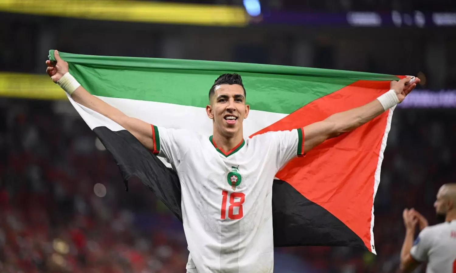 ഐക്യദാർഢ്യം; ഫലസ്തീൻ പതാക പുതച്ച് മൊറോക്കൻ താരങ്ങൾ