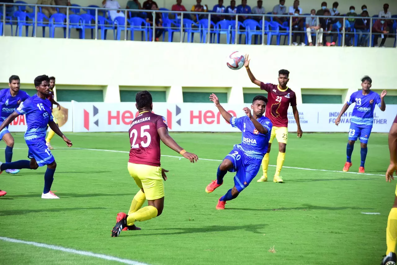 ഗോള് വഴങ്ങിയതിന് ശേഷം ഉണര്ന്നു കളിച്ച കര്ണ്ണാടക തുടരെ മൂന്ന് തവണയാണ് ഒഡീഷ വലകുലുക്കിയത്. കർണാടകയ്ക്കായി സുധീർ കോട്ടികെല രണ്ടു തവണ വലകുലുക്കിയപ്പോള് മലയാളി താരം ബാനു നിഷാദ് ഒരു ഗോൾ നേടി.