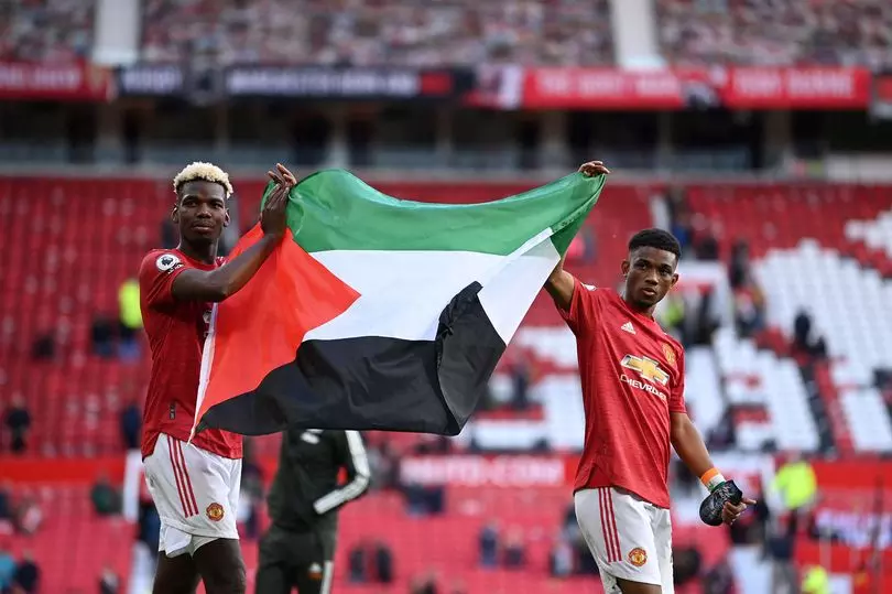 ഓള്ഡ് ട്രഫോഡില് ഫലസ്തീന് പതാകയുമായി പോഗ്ബ