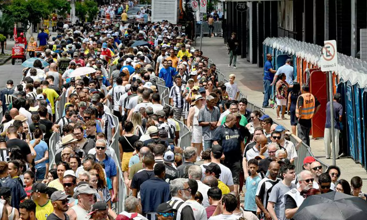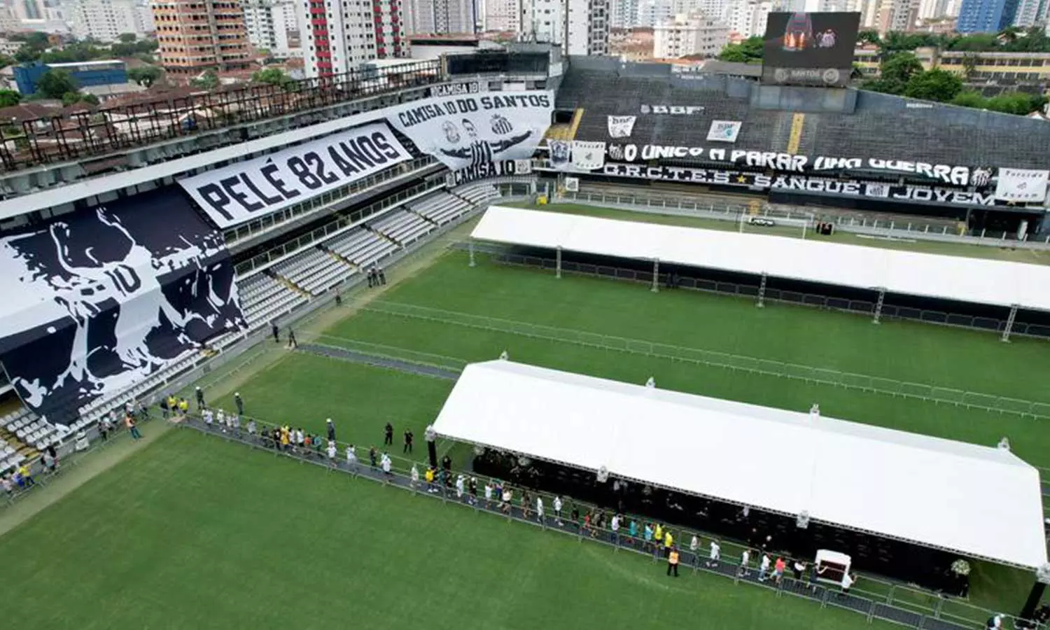 |പെലെ കളിച്ചുവളർന്ന, ഇതിഹാസജീവിതത്തിലേക്ക് പന്തുതട്ടിയ മൈതാനമുറ്റത്ത്, സാന്റോസ് ക്ലബിന്റെ സ്വന്തം തട്ടകമായ ബെൽമിറോയിൽ പൊതുദർശനം പുരോഗമിക്കുകയാണ്