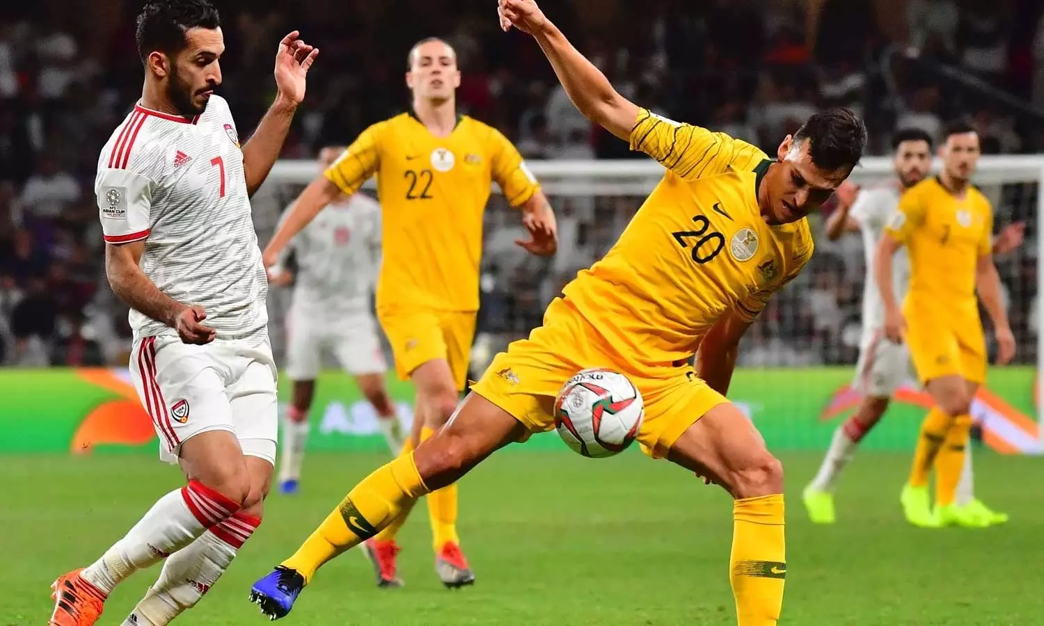 ലോകകപ്പ് വേദികളിലൊന്നായ അഹമ്മദ് ബിൻ അലി സ്റ്റേഡിയത്തിൽ നടന്ന പോരാട്ടത്തിൽ ഒന്നാം പകുതി ഗോൾരഹിതമായിരുന്നു. എന്നാൽ രണ്ടാം പകുതി ആരംഭിച്ച് 8 മിനുറ്റ് പിന്നിട്ടപ്പോൾ മത്സരത്തിലെ ആദ്യഗോൾ പിറന്നു. 53-ാം മിനിറ്റിൽ ജാക്സൺ ഇർവിൻ ഓസീസിനെ മുന്നിലെത്തിച്ചു. എന്നാൽ, ഓസ്ട്രേലിയയുടെ സന്തോഷങ്ങൾക്കെല്ലാം തടയിട്ട് 57-ാം മിനിറ്റിൽ കയോ കനിഡോ യുഎഇയെ ഒപ്പമെത്തിച്ചു.