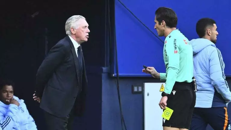 സത്യത്തിൽ ഫെബ്രുവരി മാസം തുടക്കം മുതൽ തന്നെ റയലും റഫറിമാരും തമ്മിലുള്ള യുദ്ധം തുടങ്ങിയിരുന്നു. എസ്പാന്യോളിനെതിരായ തോൽവിക്ക് ശേഷം വാർത്ത സമ്മേളനത്തിന് വന്ന കാർലോ ആഞ്ചലോട്ടി റഫറിമാർക്കെതിരെ ആഞ്ഞടിച്ചു. അന്ന് എംബാപ്പെക്ക് നേരെ എസ്പാന്യോൾ താരമായ കാർലോസ് റൊമേറോ മാരകമായ ഫൗൾ ചെയ്തിട്ടും യെല്ലോ കാർഡ് മാത്രമാണ് നൽകിയത്. ഇതേ റൊമേറോ തന്നെ വിജയഗോൾ കുറിച്ചത് റയലിനെ ശരിക്കും ചൊടിപ്പിച്ചു. അത് ചുവപ്പ് കാർഡ് അർഹിച്ച ഫൗളാണെന്ന് തുറന്നുപറഞ്ഞ ആഞ്ചലോട്ടി പരിക്ക് പറ്റാത്തത് ഭാഗ്യംകൊണ്ട് മാത്രമാണെന്നും തുറന്നടിച്ചു.