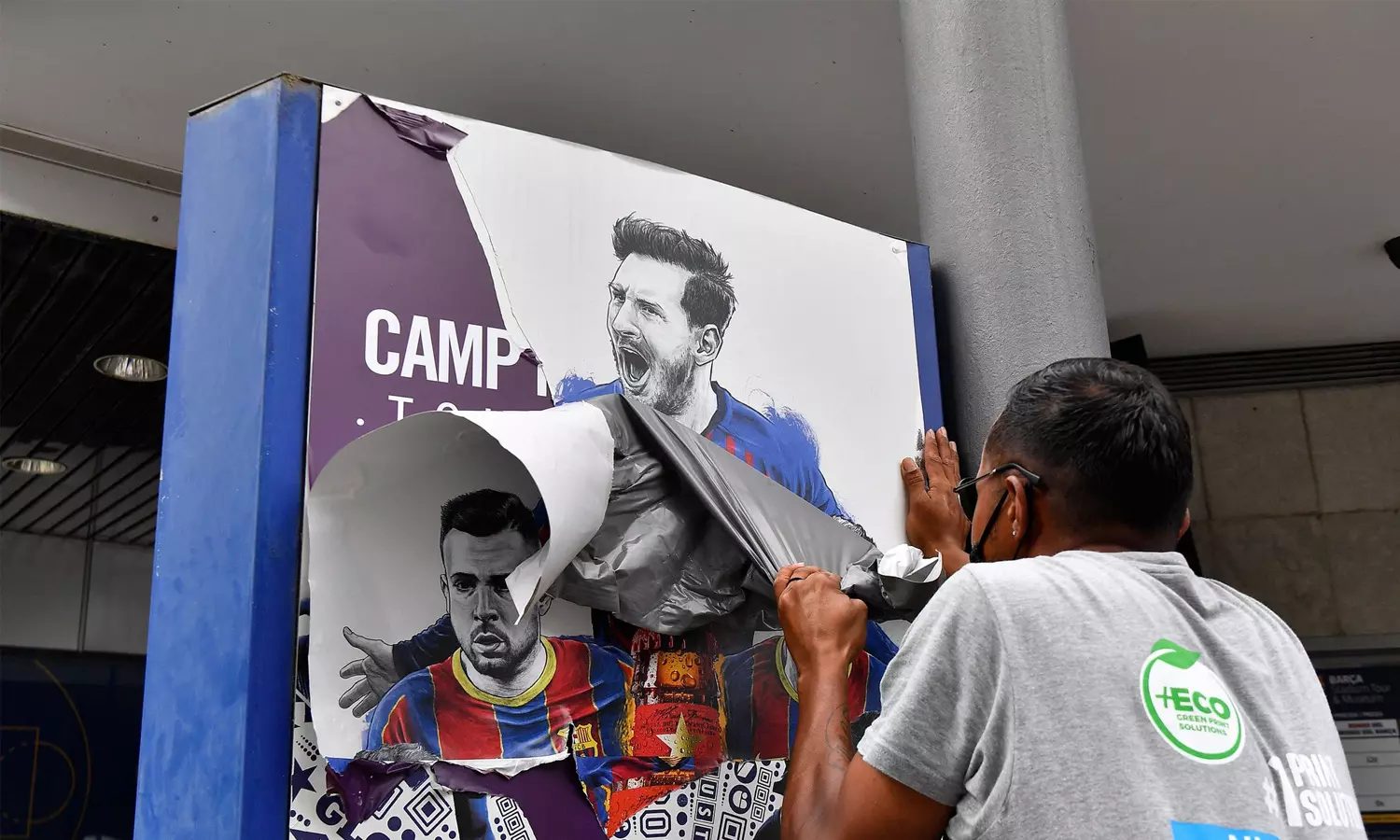 നൗ ക്യാമ്പ് സ്റ്റേഡിയത്തില് നിന്ന് മെസിയുടെ ചിത്രങ്ങള് നീക്കം ചെയ്തു തുടങ്ങി