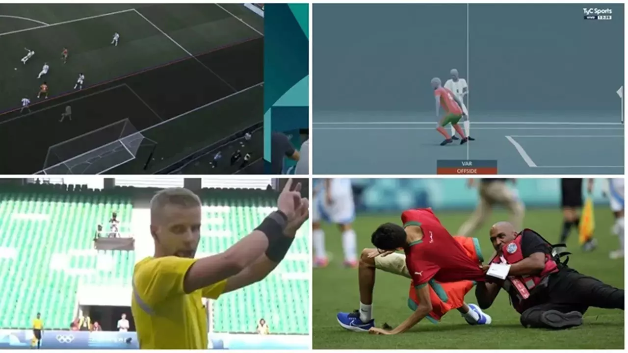 |പാരിസ്: ഒളിമ്പിക്സ് ഫുട്ബോളിലെ നാടകീയ മത്സരത്തിന് അതിനാടകീയ അന്ത്യം. മൊറോക്കോക്കെതിരെ അവസാന മിനുറ്റിൽ അർജൻറീന നേടിയ ഗോൾ വാർ പരിശോധനയിൽ റദ്ദാക്കിയതോടെ സമനിലയെന്ന് വിധികുറിച്ച മത്സരത്തിൽ മൊറോക്കോക്ക് അവിശ്വസനീയ ജയം.