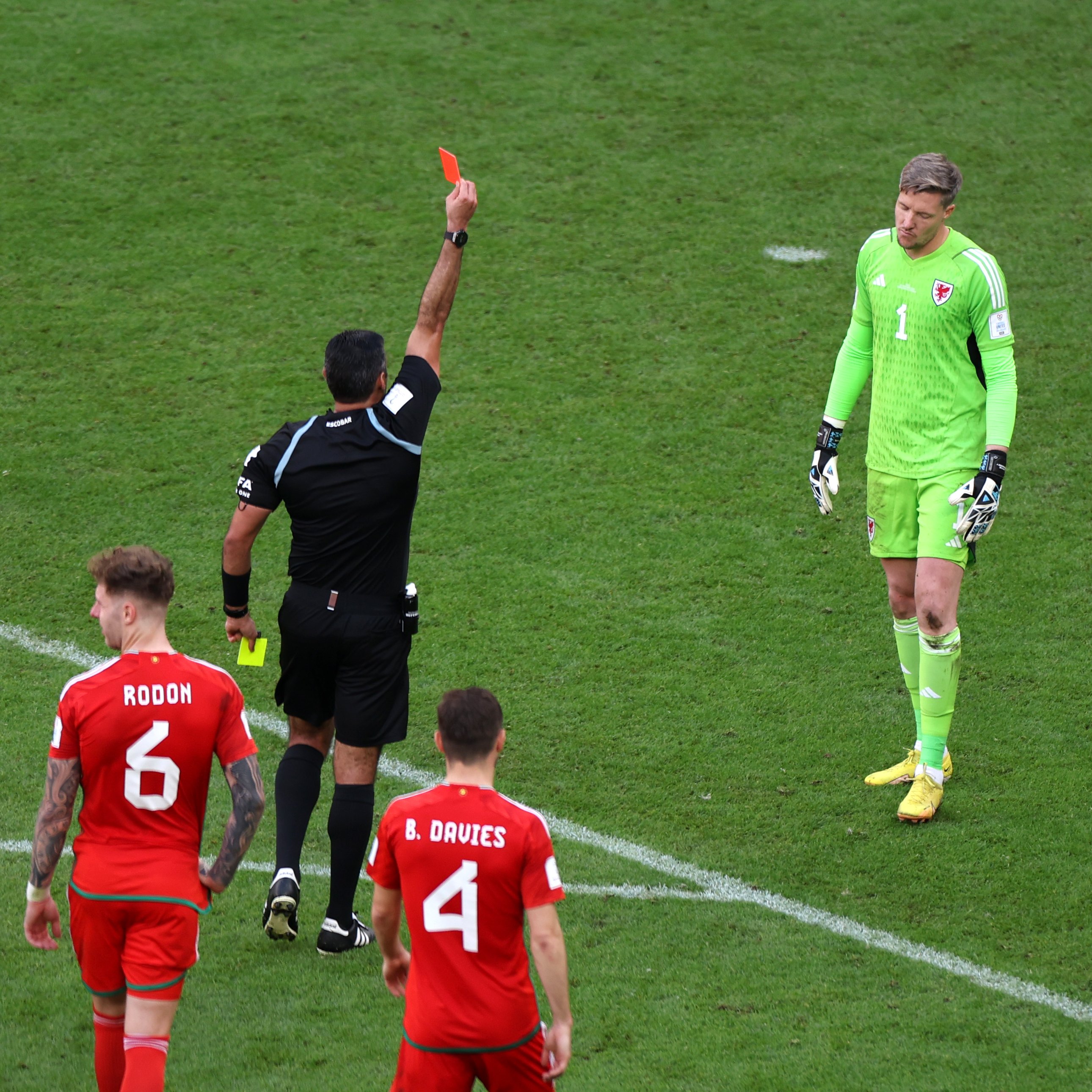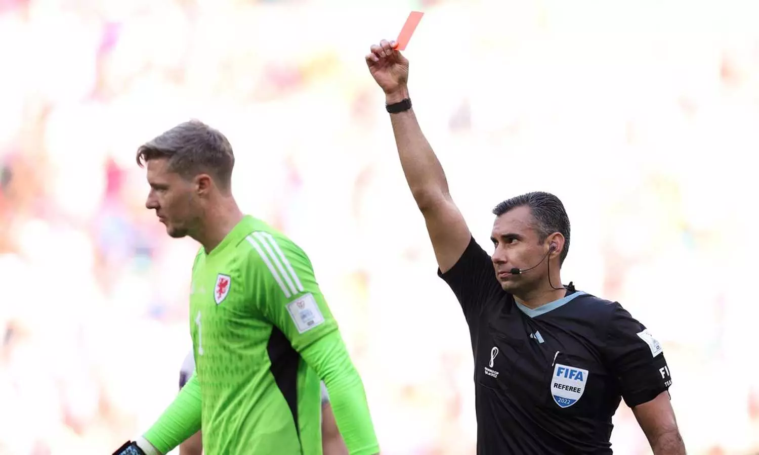 ദോഹ: ഈ ലോകകപ്പിലെ ആദ്യ ചുവപ്പുകാർഡ് വെൽസിന്റെ ഗോൾ കീപ്പർ ഹെന്നിസ്സിക്ക്. ഇറാൻ - വെയിൽസ് മത്സരത്തിന്റെ 86ാം മിനുറ്റിൽ ഇറാൻ താരം മെഹദി തരേമിയെ ഫൗൾ ചെയ്തതിനാണ് ഹെന്നസ്സിക്ക് ചുവപ്പുകാർഡ് കിട്ടിയത്. ഗോൾ ലക്ഷ്യമാക്കി കുതിക്കുകയായിരുന്ന തരേമിയെ ബോക്സിന് പുറത്തേക്ക് ഇറങ്ങിച്ചെന്ന് ഹെന്നിസ്സി ഫൗൾ ചെയ്യുകയായിരുന്നു. ആദ്യം റഫറി മഞ്ഞകാർഡായിരുന്നു ഹെന്നിസ്സിക്കെതിരെ ഉയർത്തിയതെങ്കിലും വാർ പരിശോധനയ്ക്ക് ശേഷം ചുവപ്പ് കാർഡ് നൽകുകയായിരുന്നു.