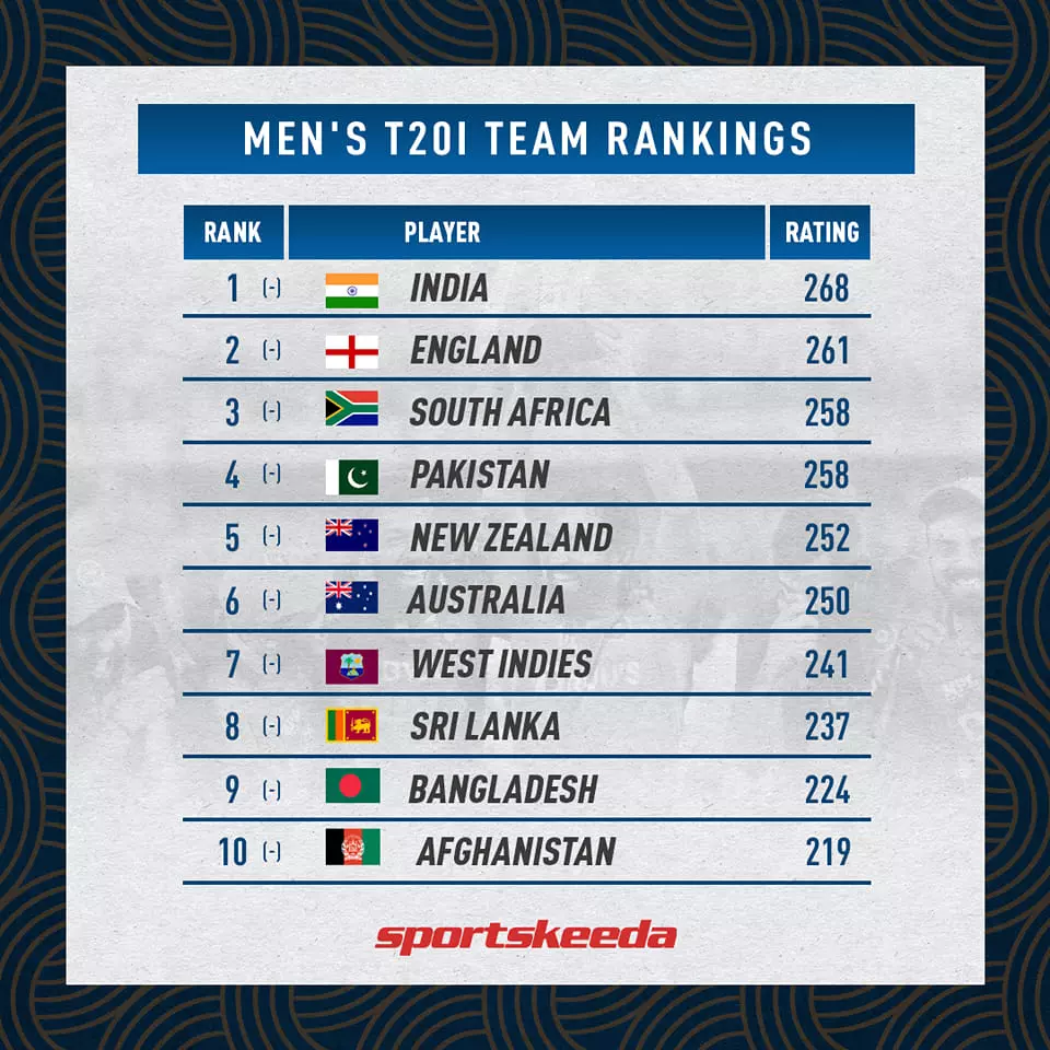 തലപ്പത്ത് തന്നെ; ഇന്ത്യ ടി20 റാങ്കിങ്ങില് ഒന്നാമത്