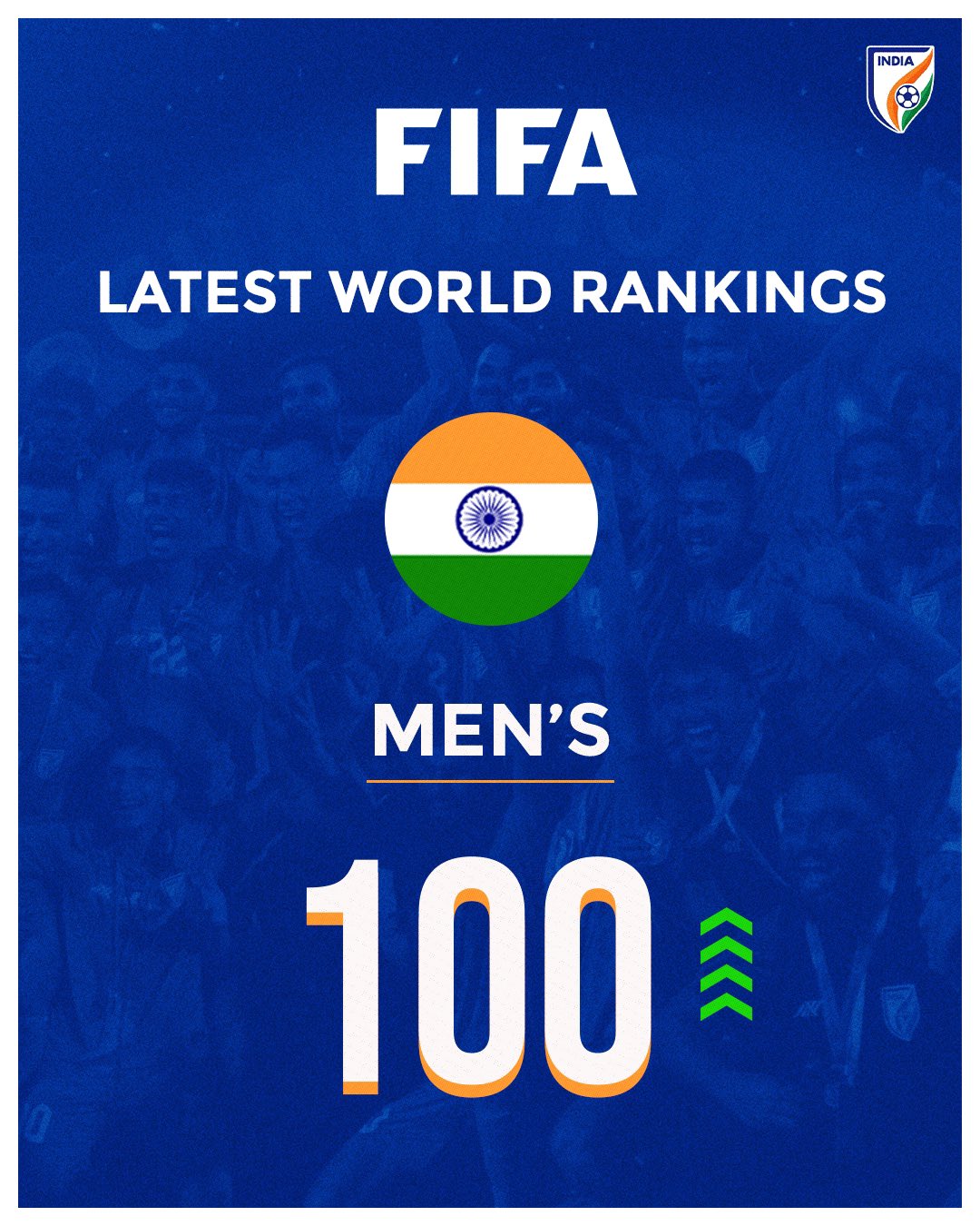 തോൽവി അറിയാത്ത കുതിപ്പ്; ഫിഫ റാങ്കിങ്ങിൽ 100ൽ ഇടം പിടിച്ച് ഇന്ത്യ