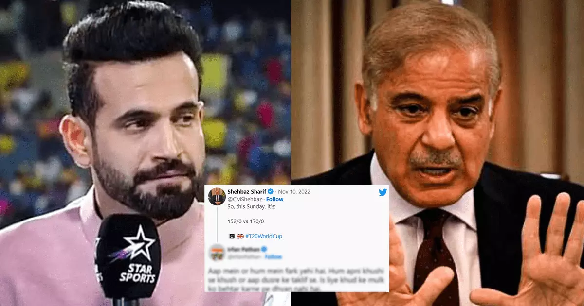 ടി20 ലോകകപ്പ് സെമിയില് പുറത്തായ ഇന്ത്യന് ടീമിനെ പരിഹസിച്ച് ട്വീറ്റ് ചെയ്ത പാക് പ്രധാനമന്ത്രി ഷെഹ്ബാസ് ഷരീഫിന് മറുപടിയുമായി ഇര്ഫാന് പത്താന്. ടി20 ലോകകപ്പ് സെമിയില് ഇംഗ്ലണ്ടിനോട് 10 വിക്കറ്റിന്റെ തോല്വി വഴങ്ങിയാണ് ഇന്ത്യ പുറത്തായത്. ഇന്ത്യയുടെ തോല്വിക്ക് പിന്നാലെയായിരുന്നു പരിഹാസ ട്വീറ്റുമായി പാകിസ്താന് പ്രധാനമന്ത്രി ഷെഹ്ബാസ് ഷരീഫ് ട്വീറ്റ് ചെയ്യുന്നത്. ടി20 ലോകകപ്പുകളിലെ ഇന്ത്യയുടെ രണ്ട് വന് പരാജയങ്ങളെ പരാമര്ശിച്ചായിരുന്നു ട്വീറ്റ്.
