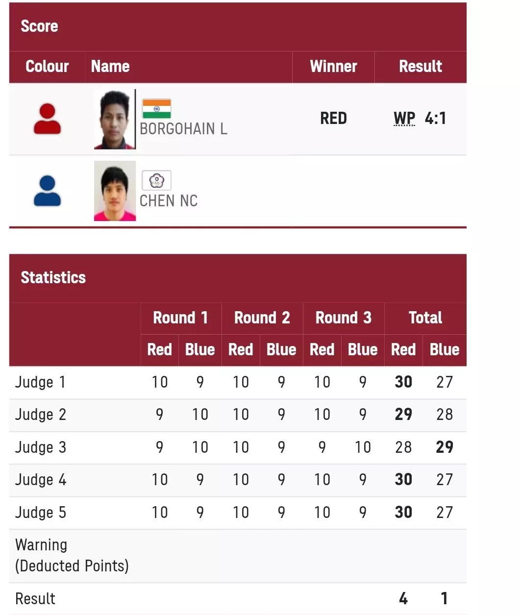 കൊകുകിഗാൻ അറീനയിലെ റിങ്ങിൽ സമ്പൂർണ ആധിപത്യമാണ് എതിരാളികൾക്കെതിരെ ലവ്ലിന പുലർത്തിയത്. 64-69 കിലോ വിഭാഗത്തിലെ മുൻ ലോക ചാമ്പ്യനാണ് ചെൻ നീൻ ചിൻ. ഒളിംപിക്സ് ബോക്സിങ്ങിൽ ഇന്ത്യയ്ക്കായി മൂന്നാമത്തെ മെഡൽ നേടുന്ന താരം കൂടിയാണ് ലവ്ലിന. മേരികോമും വിജേന്ദർ സിങ്ങുമാണ് മറ്റു രണ്ടു പേർ.