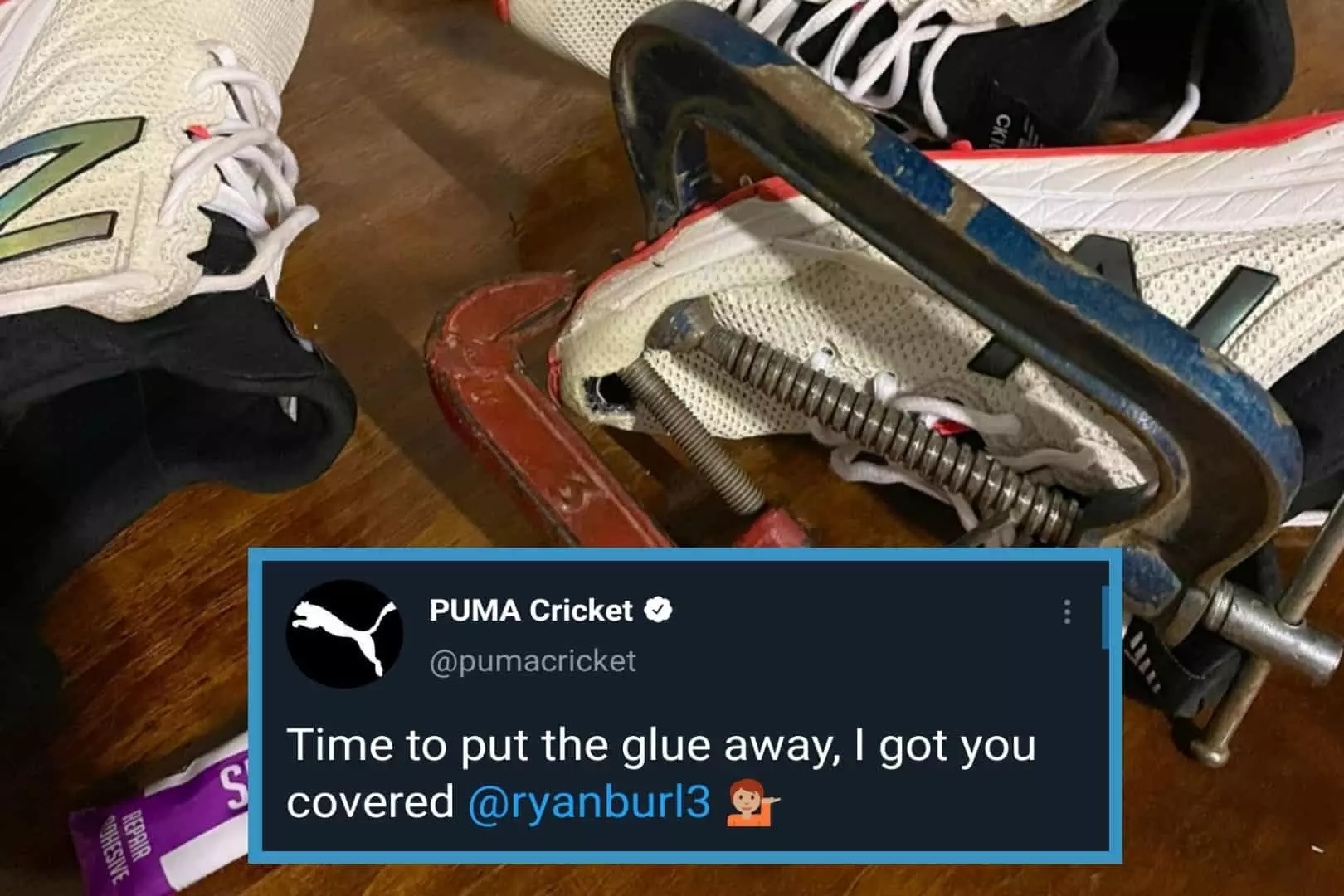 ട്വീറ്റ് സമൂഹമാധ്യമങ്ങൾ ഏറ്റെടുത്തതോടെ ടീമിന്റെ സ്പോൺസർഷിപ്പ് ഏറ്റെടുത്തു രംഗത്തെത്തിയിരിക്കുകയാണ് ലോകോത്തര കായിക ഉപകരണ നിർമാതാക്കളായ പ്യൂമ. പ്യൂമയുടെ ക്രിക്കറ്റ് വിഭാഗമാണ് ട്വിറ്റിലൂടെ തന്നെ സ്പോൺസർഷിപ്പ് വാഗ്ദാനം ചെയ്തിരിക്കുന്നത്. പശ എടുത്തെറിഞ്ഞേക്കൂ, നിങ്ങളെ കാര്യം നമ്മളേറ്റു എന്നായിരുന്നു റയാൻ ബേളിനെ ടാഗ് ചെയ്ത് പ്യൂമ ക്രിക്കറ്റിന്റെ പ്രതികരണം.