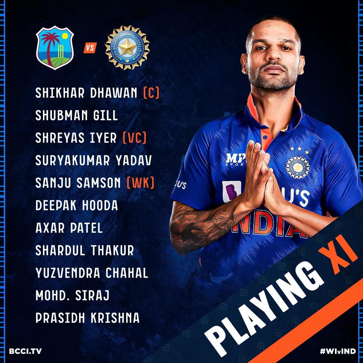 ശിഖര് ധവാന് നയിക്കുന്ന ടീമിന്റെ വൈസ് ക്യാപ്റ്റന് ശ്രേയസ് അയ്യര് ആണ്. ടോസ് നേടിയ വിന്ഡീസ് നായകന് നിക്കോളാസ് പൂരന് ബൌളിങ് തെരഞ്ഞെടുക്കുകയായിരുന്നു. ഇംഗ്ലണ്ടിനെതിരായ ഏകദിന(2-1)-ടി20(2-1) പരമ്പര ജയിച്ചതിന്റെ ആത്മവിശ്വാസത്തിലാണ് ഇന്ത്യ വെസ്റ്റിന്ഡീസിനെ നേരിടാന് ഇറങ്ങുന്നത്. അതേസമയം വിന്ഡീസാകട്ടെ ബംഗ്ലാദേശിനോടേറ്റ(3-0) കനത്ത പരാജയത്തിന്റെ ക്ഷീണവുമായാണ് ഇന്ത്യക്കെതിരെ ഇറങ്ങുന്നത്.