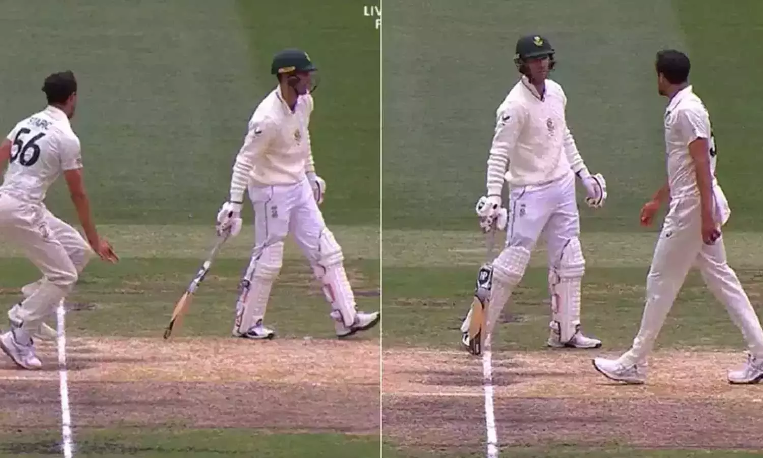 ആസ്ട്രേലിയൻ പേസർ മിച്ചൽ സ്റ്റാർക്ക് ദക്ഷിണാഫ്രിക്കൻ രണ്ടാം ഇന്നിങ്സിലെ 19-ാം ഓവർ എറിയുമ്പോഴാണ് സംഭവം. സ്റ്റാർക്ക് റണ്ണപ്പ് ചെയ്തു ആക്ഷൻ പൂർത്തിയാക്കും മുമ്പ് ദക്ഷിണാഫ്രിക്കൻ ബാറ്റർ ദിയുനിസ് ഡി ബ്രൂൺ ക്രീസിൽ നിന്ന് പുറത്തേക്കിറങ്ങി. സ്റ്റാർക്ക് ബോൾ ചെയ്യാതെ ബ്രൂണിന് വാണിങ് നൽകുകയായിരുന്നു. സ്റ്റാർക്കിന്റെ രസകരമായ സംഭാഷണവും സ്റ്റമ്പ് മൈക്കിൽ പതിഞ്ഞു. '' ക്രീസിൽ നിൽക്കൂ, അത് അത്ര ബുദ്ധിമുട്ടൊന്നും ഉള്ള കാര്യമല്ല''- സ്റ്റാർക്ക് ബ്രൂണിനോട് പറഞ്ഞു.