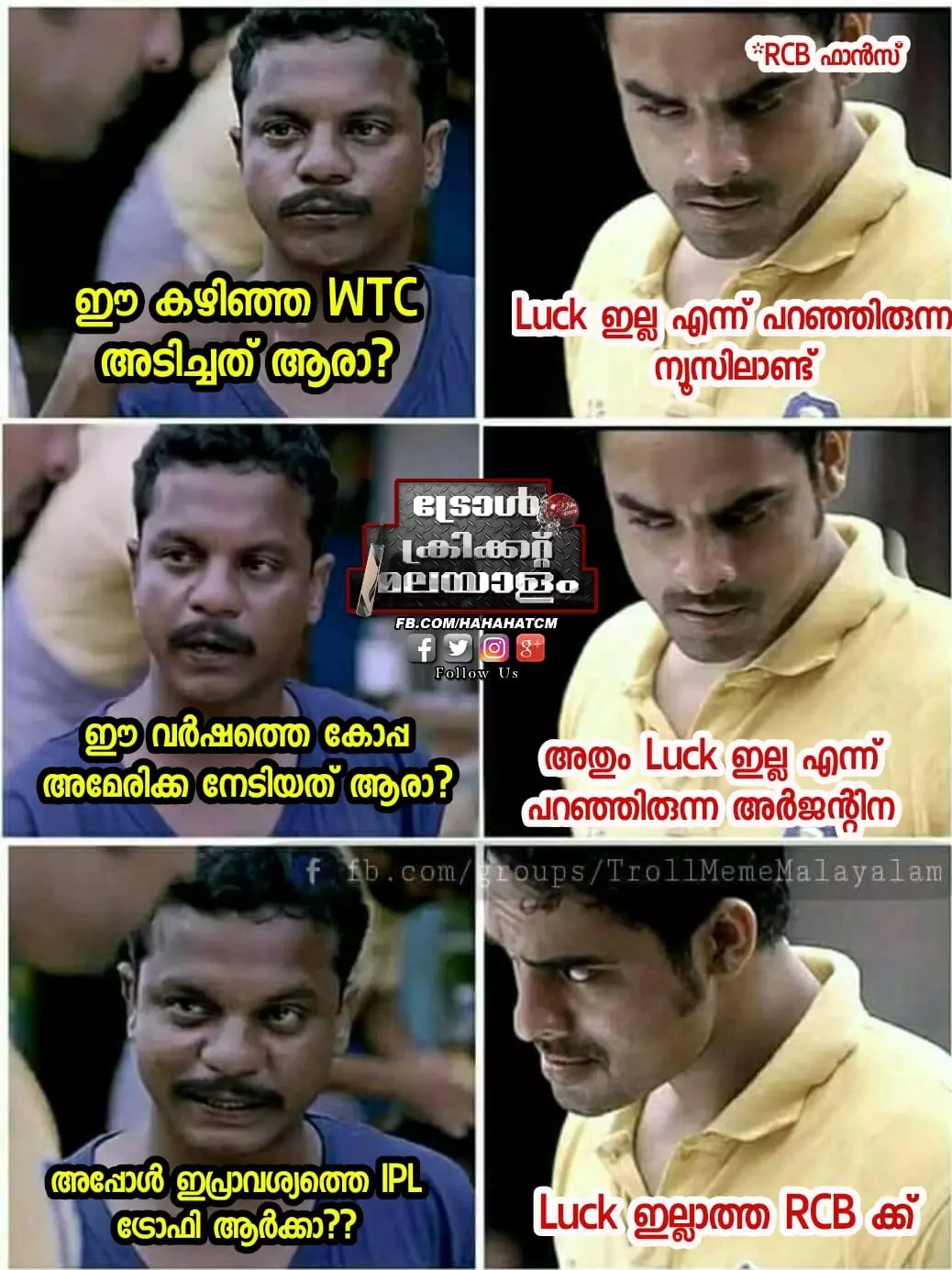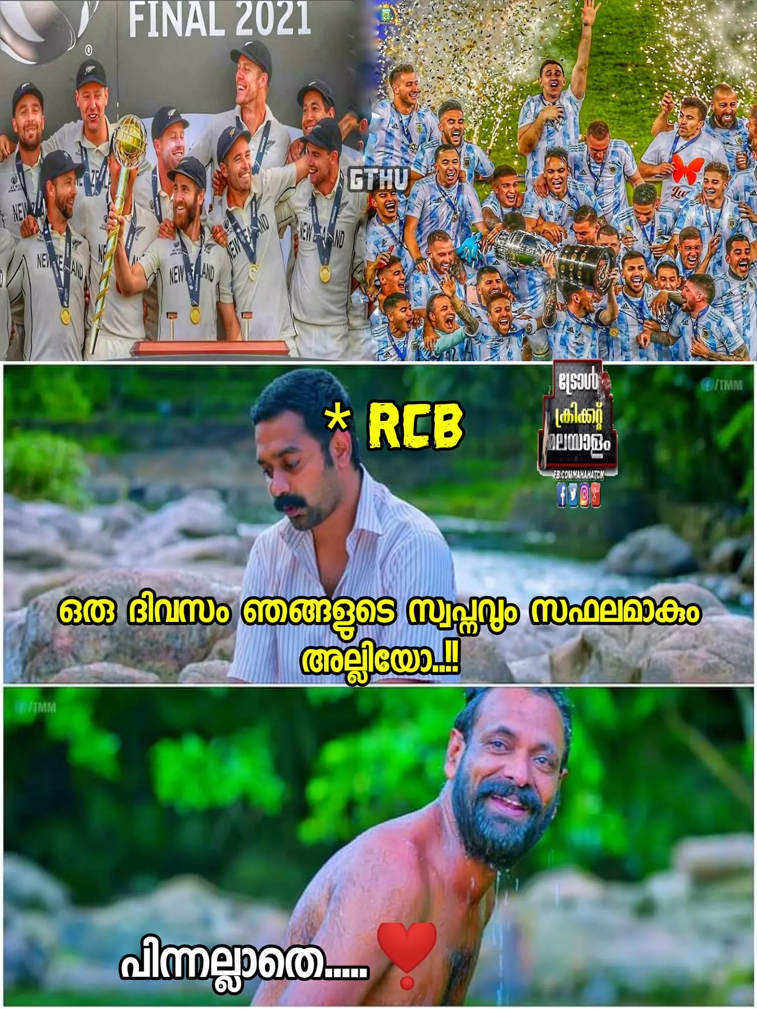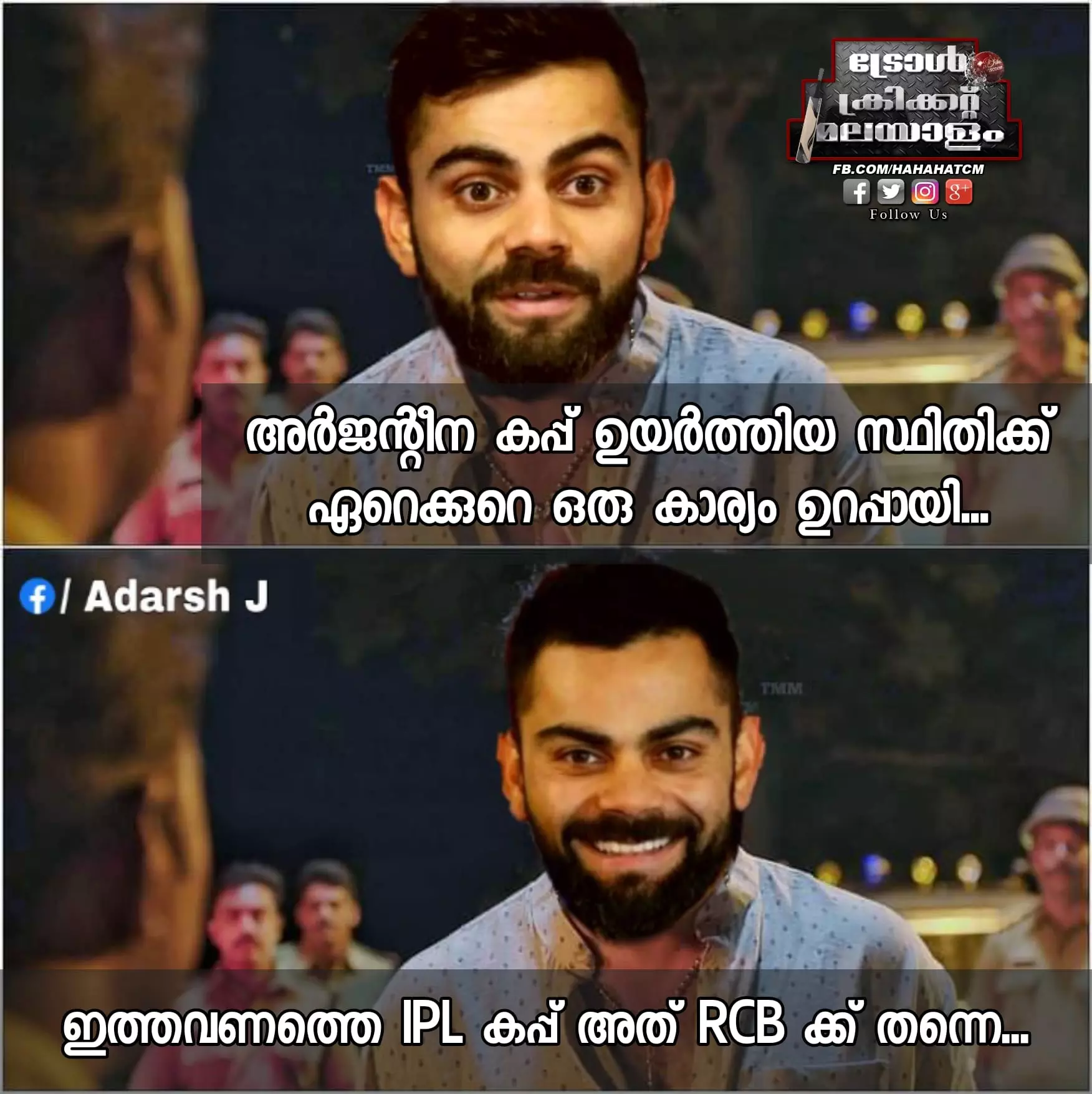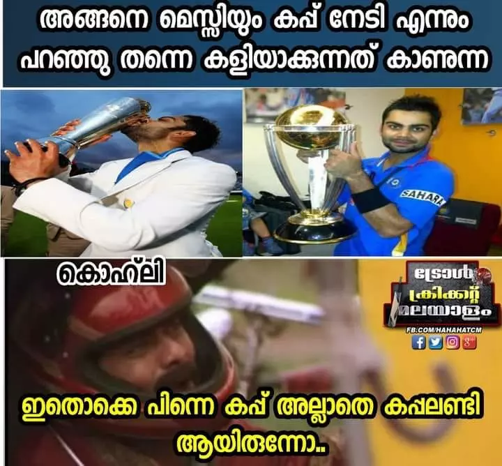 കോപ്പ അമേരിക്ക ഫൈനലിൽ ബ്രസീലിനെ എതിരില്ലാത്ത ഒരു ഗോളിന് തോൽപ്പിച്ച് അർജന്റീന കിരീടമണിഞ്ഞെങ്കിലും മലയാളികളുടെ ട്രോളുകൾ ഏറ്റുവാങ്ങാൻ ബ്രസീൽ ഒറ്റയ്ക്കല്ല കൂടെ നമ്മുടെ കോലിയുടെ ഐപിഎൽ ടീമായ റോയൽ ചലഞ്ചേഴ്സ് ബാംഗ്ലൂരുമുണ്ട്.