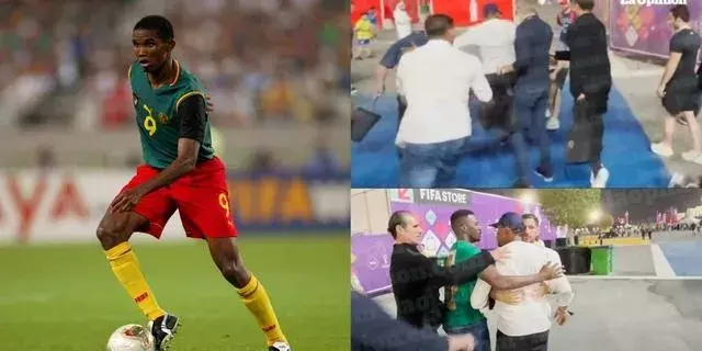 അകത്ത് ബ്രസീലിന്റെ ഗോളടി, പുറത്ത് സാമുവല് എറ്റൂവിന്റെ അടി; വ്ളോഗറെ ചവിട്ടി നിലത്തിട്ട് മുന് കാമറൂണ് താരം