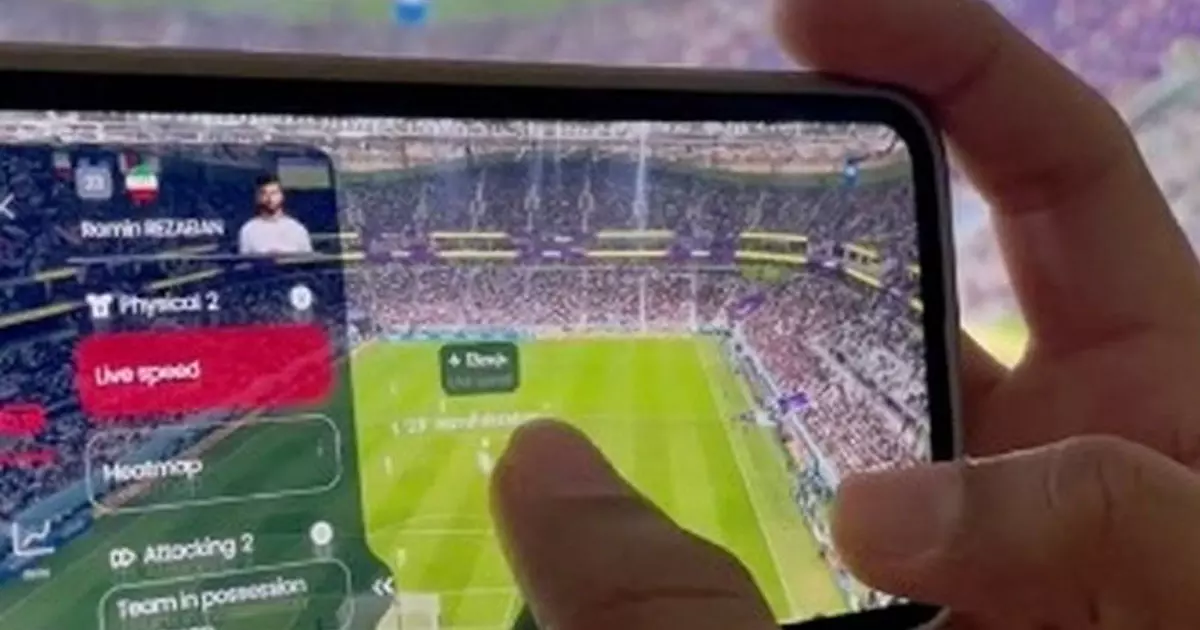 ഫുട്ബോൾ കാണുമ്പോൾ തന്നെ കളിക്കാരുടെ വിവരങ്ങളറിയാൻ അവസരമൊരുക്കി ഫിഫയുടെ വിആർ സാങ്കേതികവിദ്യ. ഖത്തർ ലോകകപ്പിൽ ഒരു ഫുട്ബോൾ ആരാധകൻ, യുഎസ്എയുമായുള്ള ഇറാന്റെ ഗ്രൂപ്പ് ഘട്ട പോരാട്ടം കാണുമ്പോൾ ഫിഫയുടെ വിആർ സാങ്കേതികവിദ്യ ഉപയോഗിക്കുന്ന വീഡിയോ പുറത്തുവന്നിരുന്നു. മത്സരം നടന്ന അൽ തുമാമ പോലുള്ള സ്റ്റേഡിയങ്ങളിൽ ആരാധകർക്ക് വി.ആർ സാങ്കേതികവിദ്യ ഉപയോഗിക്കാനാകും. ഇത്തരം സൗകര്യമുള്ളയിടങ്ങളിൽ ആരാധകന് ആപ്പ് തുറന്ന് ക്യാമറ ഉപയോഗിച്ച് ഫീൽഡ് കാണുകയും കളിക്കാരെ ടാപ്പ് ചെയ്ത് വിവരങ്ങൾ അറിയാനുമാകും.