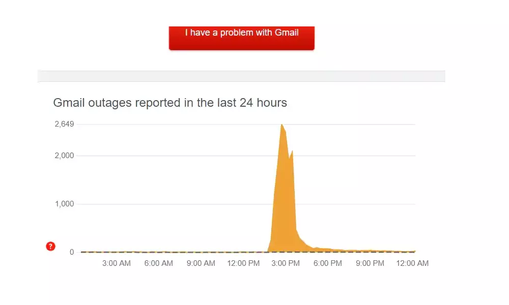 54 ശതമാനം ജിമെയിൽ ഉപയോക്താക്കൾ സെർവർ തകരാർ അഭിമുഖീകരിച്ചപ്പോൾ 31 ശതമാനം പേർ ഇ-മെയിൽ അയക്കുന്നതിൽ ബുദ്ധിമുട്ട് നേരിട്ടു. 15 ശതമാനം ഉപയോക്താക്കൾക്ക് ഗൂഗിൾ വെബ്സൈറ്റ് ഉപയോഗിക്കുന്നതിൽ തന്നെ ബുദ്ധിമുട്ട് നേരിടുകയുണ്ടായി.