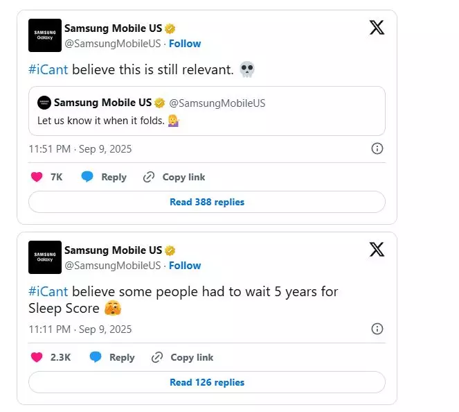 |#ICant എന്ന ഹാഷ്ടാഗ് ഉപയോഗിച്ചാണ് സാംസങ് ആപ്പിളിനെ കളിയാക്കിയുള്ള പോസ്റ്റുകളെല്ലാം