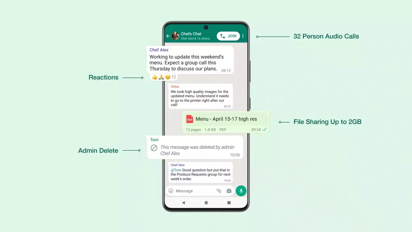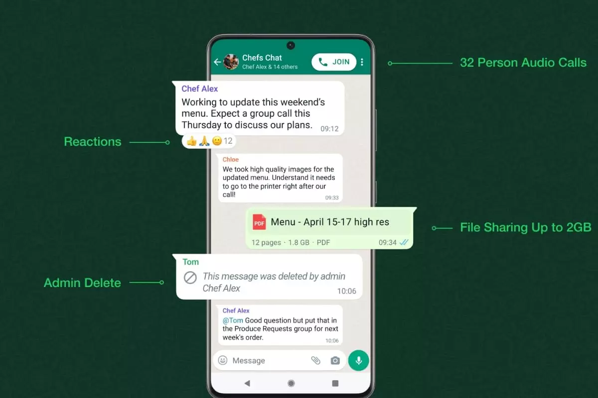 ഗ്രൂപ്പുകൾ നിയന്ത്രിക്കുന്നത് മുതൽ വോയിസ് കോളിലേക്ക് കൂടുതൽ പേരെ ഉള്പ്പെടുത്തുന്നതടക്കമുള്ള കൂടുതല് സൗകര്യങ്ങളാണ് ഇനി വരാനിരിക്കുന്നത്