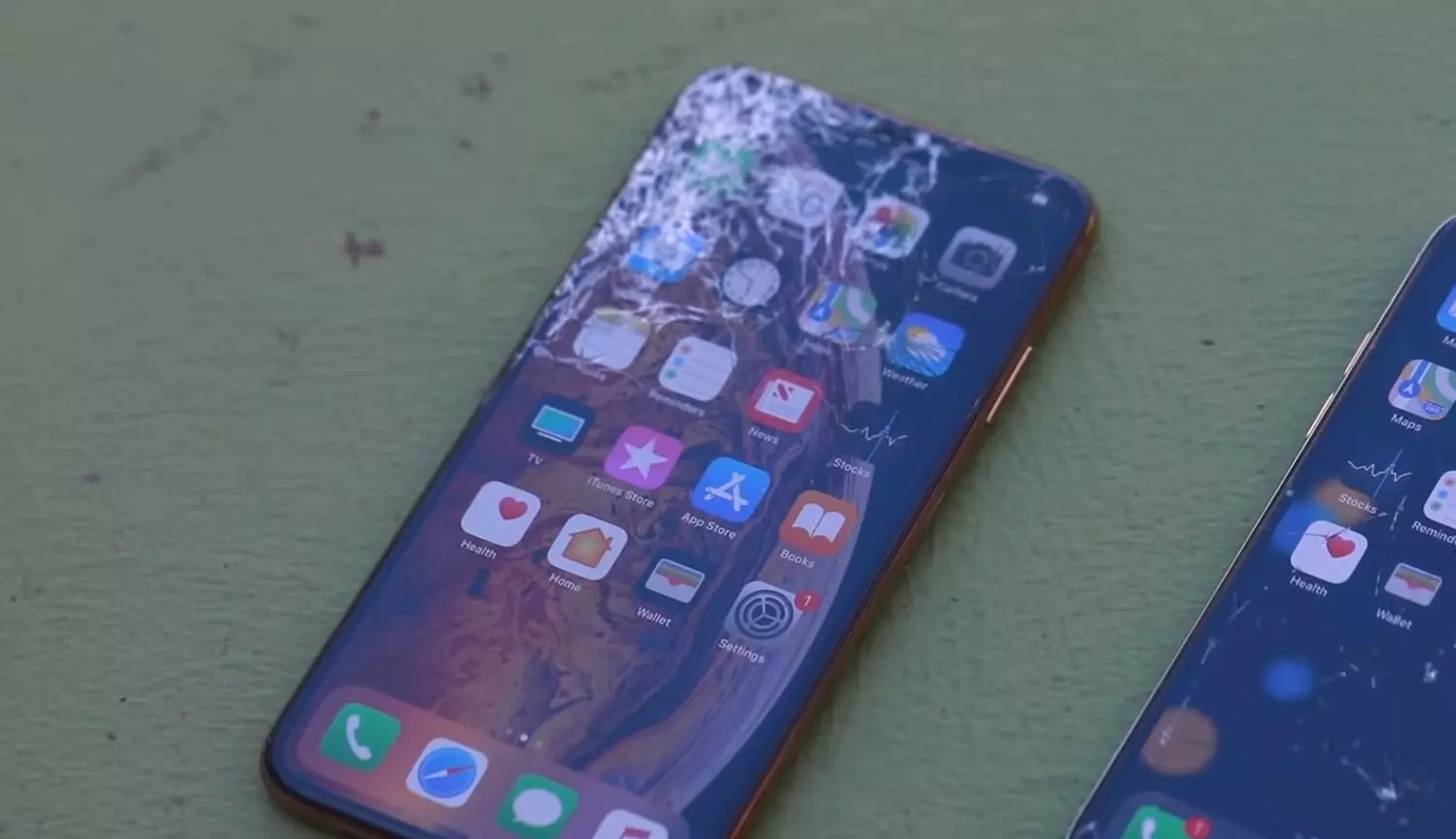 ഒടുവിലായി പത്ത് അടി മുകളില് നിന്നുള്ള വീഴ്ച്ച. ഇത്തവണ ഐഫോണ് എക്സ് കൂടുതല് തകര്ന്നു(നേരത്തത്തെ വീഴ്ച്ചയില് തന്നെ ചെറിയ പൊട്ടലുകളുണ്ടായിരുന്നു) എന്നാല് അപ്പോഴും ഐഫോണ് ഐഫോണ് XSന് ഒരു കുഴപ്പവും പറ്റിയില്ല! അതേസമയം ഐഫോണ് XS Maxന്റെ മുന്നിലെ ചില്ല് തകര്ന്നു. അപ്പോഴും ഫോണിന്റെ പ്രവര്ത്തനത്തിന് കുഴപ്പമുണ്ടായിരുന്നില്ല.