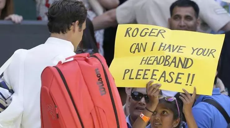 പ്രായം തളര്ത്താത്ത പോരാളി അതാണ്, ടെന്നീസ് ഇതിഹാസം റോജര് ഫെഡറര്. കളത്തില് മാത്രമല്ല തന്റെ ആരാധകരെയും ഫെഡറര് നിരാശരാക്കാറില്ല. അതിന് ഗ്രൗണ്ടിലായാലും പുറത്തായാലും. ഇന്നലെ വിംബിള്ടണ് ടൂര്ണമെന്റില് അത്തരമൊരു കാഴ്ച കണ്ടു. മത്സര ശേഷം സ്റ്റേഡിയത്തിലെ ഒരു കുഞ്ഞ് ആരാധിക ബാനറിലൂടെ ചോദിക്കുന്നു, താങ്കളുടെ ആ ഹെഡ്ബാന്റ് തരുമോ എന്ന്, ഫെഡറര് സ്റ്റേഡിയത്തിലെ ആരാധകര്ക്ക് ഓട്ടോഗ്രാഫ് നല്കുന്നതിനിടെയാണ് ഇൌ ആരാധിക ബാനറുമായി ഫെഡറര്ക്ക് മുന്നിലെത്തിയത്.