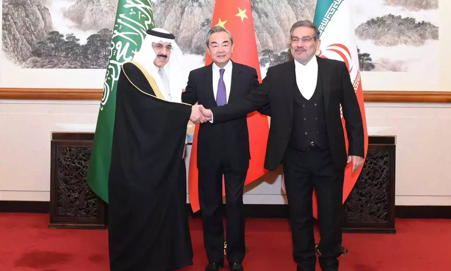 2023 മാർച്ച് 10ന് ബെയ്ജിങ്ങിൽനിന്നു പുറത്തുവന്ന ഒരു ദൃശ്യം പശ്ചിമേഷ്യയിൽ പുതിയൊരു യുഗപ്പിറവിയുടെ വിളംബരമായിരുന്നു. സൗദി ദേശീയ സുരക്ഷാ ഉപദേഷ്ടാവും മന്ത്രിയുമായ മുസ്അദ് ബിൻ മുഹമ്മദ് അൽഐബാനും ഇറാൻ ദേശീയ സുരക്ഷാ കൗൺസിൽ സെക്രട്ടറി അലി ഷംഖാനിയും പുഞ്ചിരിച്ചു പരസ്പരം ഹസ്തദാനം ചെയ്യുന്നു. നടുവിൽ രണ്ടുപേരെയും ചേർത്തുപിടിച്ച് ചൈനീസ് വിദേശകാര്യ മന്ത്രി വാങ് യീയും.