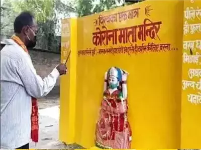 |കൊറോണ മാതയോട് പ്രാര്ത്ഥിച്ചാല് മഹാമാരിയില്നിന്നും രക്ഷ ലഭിക്കുമെന്ന വിശ്വാസത്തിലാണ് മന്ദിര് സ്ഥാപിച്ചതെന്ന് ഗ്രാമീണര് പറയുന്നു