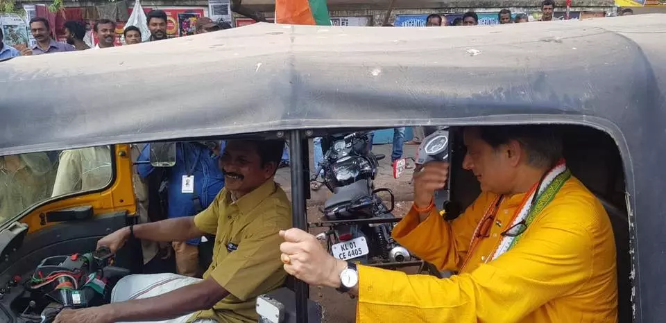 ഓട്ടോ തൊഴിലാളികളുടെ വോട്ടുറപ്പിക്കാൻ ഓട്ടോ സവാരി നടത്തി തരൂര്