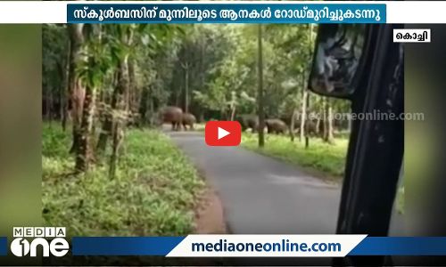 കോതമംഗലം പിണവൂർകുടിയിൽ നിന്ന് കുട്ടമ്പുഴയിലേക്ക് കുട്ടികളുമായി വരികയായിരുന്നു സ്വകാര്യ സ്കൂൾ ബസിന്റെ മുൻപിലൂടെയായിരുന്നു കാട്ടാനക്കൂട്ടം നടന്നുപോയത്