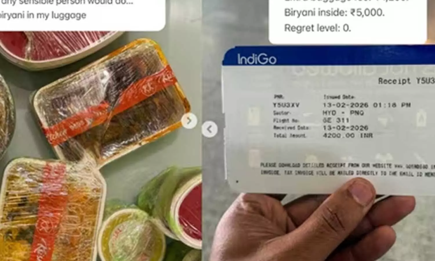ബിരിയാണിയുമായി വിമാനം കയറി യുവാവ്; ലഗേജ് ഫീസായി നൽകിയത് 4,200 രൂപ, പ്രശംസിച്ച് സോഷ്യൽ മീഡിയ