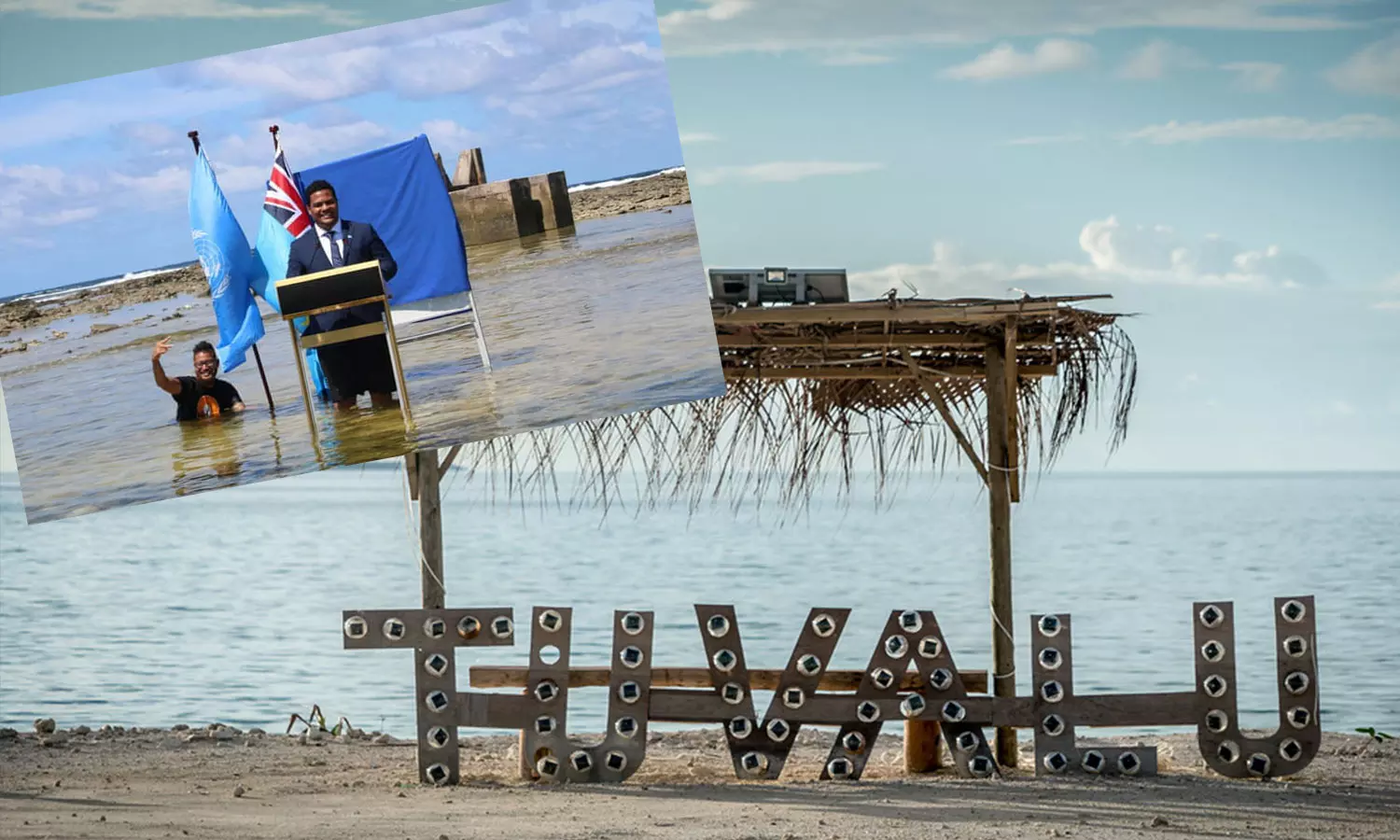 ഗ്ലാസ്ഗോയിൽ നടക്കുന്ന യുഎൻ കാലാവസ്ഥാ സമ്മേളനത്തിന്റെ ഭാഗമായി കടലിൽ മുട്ടറ്റം മുങ്ങിനിന്ന് പ്രസംഗിച്ച് ഒരു രാഷ്ട്രപ്രതിനിധി വാർത്തകളിൽ നിറഞ്ഞിരുന്നു കഴിഞ്ഞ ദിവസം. തുവാലു എന്ന ദ്വീപരാജ്യത്തിന്റെ വിദേശകാര്യ മന്ത്രി സിമോൻ കോഫെ ആയിരുന്നു ടൈയും സ്യൂട്ടുമിട്ട് കടലിൽ നിന്ന് യുഎൻ സമ്മേളത്തെ അഭിസംബോധന ചെയ്തത്. കാലാവസ്ഥാ വ്യതിയാനം കാരണം തന്റെ രാജ്യം നേരിടുന്ന അപകടഭീഷണിയുടെ ഗൗരവം ലോകത്തെ ഉണർത്താനായിരുന്നു സിമോൻ ഈ തന്ത്രം പയറ്റിയത്.