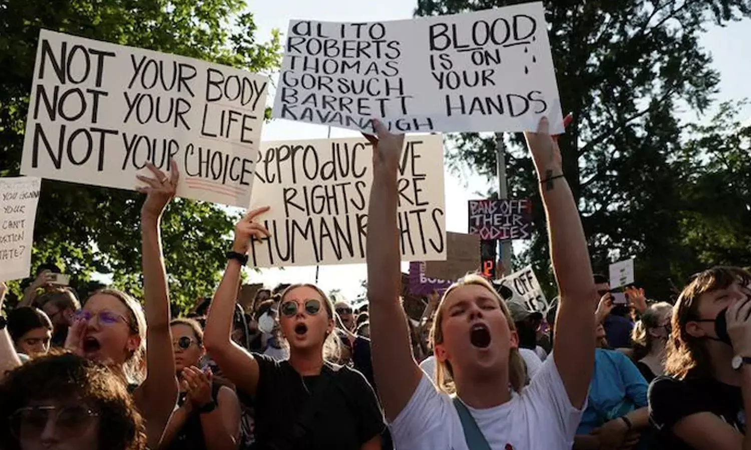 |അമേരിക്കയിൽ ഗർഭഛിദ്രം നടത്തുന്നതിന് നിയമ സാധുത നൽകുന്ന വിധി റദ്ദാക്കിയ സുപ്രീം കോടതി തീരുമാനത്തിനെതിരെ പ്രതിഷേധം ശക്തമാവുന്നു.
