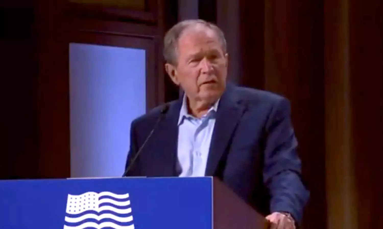 ഡാലസിലെ ജോർജ് ഡബ്ല്യു ബുഷ് ഇൻസ്റ്റിറ്റ്യൂട്ടിൽ നടത്തിയ പ്രഭാഷണത്തിനിടെയായിരുന്നു 2003-ലെ ഇറാഖ് അധിനിവേശത്തിന്റെ നേതൃസ്ഥാനത്തുണ്ടായിരുന്ന മുൻ പ്രസിഡണ്ടിനെ നാവു ചതിച്ചത്.