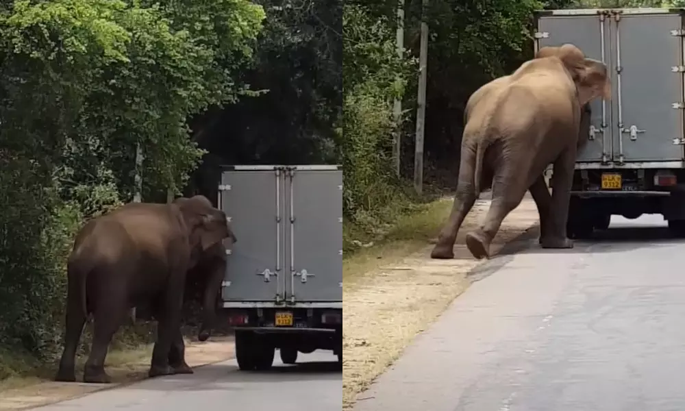 നമ്മളോടാണോ കളി, റോഡിന് നടുവിൽ നിലച്ച വാഹനം സ്റ്റാർട്ടാക്കാൻ സഹായിച്ച് കാട്ടാന! - വീഡിയോ