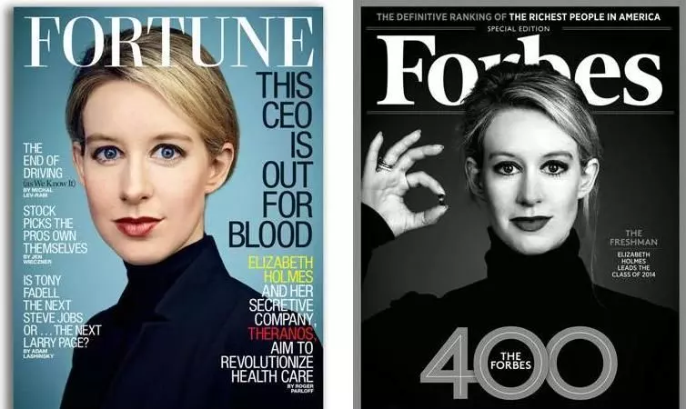 ഫോബ്സ് മാസിക കമ്പനിയുടെ 9 ബില്യൺ ഡോളറിന്റെ മൂല്യനിർണയത്തിന്റെ അടിസ്ഥാനത്തിൽ അമേരിക്കയിലെ ഏറ്റവും പ്രായം കുറഞ്ഞതും സമ്പന്നവുമായ സ്വയം നിർമ്മിത വനിതാ ശതകോടീശ്വരിയായി ഹോംസിനെ തെരഞ്ഞെടുത്തിരുന്നു. എന്നാല് തൊട്ടടുത്ത വർഷം, ക്ലെയിമുകളെക്കുറിച്ചുള്ള തട്ടിപ്പുകളുടെ വെളിപ്പെടുത്തലിനെത്തുടർന്ന്, ഫോബ്സ് അവളുടെ മൊത്തം ആസ്തി പൂജ്യമായി പ്രസിദ്ധീകരിച്ചു. ഫോർച്യൂൺ ഹോംസിനെ 'ലോകത്തിലെ ഏറ്റവും നിരാശാജനകമായ നേതാക്കളിൽ' ഒരാളായി തിരഞ്ഞെടുത്തു.