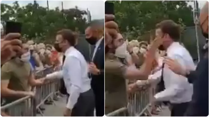 ഹസ്തദാനം നൽകിയ ഫ്രഞ്ച് പ്രസിഡന്റ് ഇമ്മാനുവൽ മാക്രോണിന്റെ മുഖത്തടിച്ച് യുവാവ്