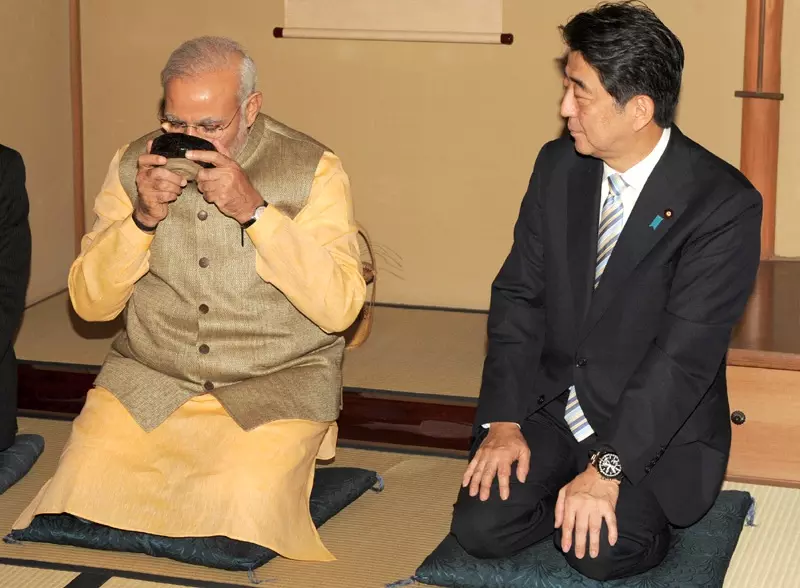 മോദി പ്രധാനമന്ത്രിയായ ശേഷം 2015ലാണ് ആബെ ആദ്യമായി ഇന്ത്യയിലെത്തുന്നത്. അന്ന് നേരെ ആബെ പറന്നത് മോദിയുടെ സ്വന്തം മണ്ഡലമായ വരാണസിയിലേക്കായിരുന്നു. രണ്ടു വർഷത്തിനുശേഷം വീണ്ടും ഇന്ത്യാ സന്ദർശനത്തിനെത്തിയപ്പോൾ മോദിയുടെ സ്വപ്ന പദ്ധതിക്ക് തുടക്കമിടാനായി അദ്ദേഹത്തിന്റെ ഗുജറാത്തിലുമെത്തി. അഹ്മദാബാദിൽ രാജ്യത്തെ ആദ്യ ബുള്ളറ്റ് ട്രെയിൻ പദ്ധതിക്ക് തുടക്കമിടുന്ന ചടങ്ങിൽ അദ്ദേഹം മുഖ്യാതിഥിയായി.