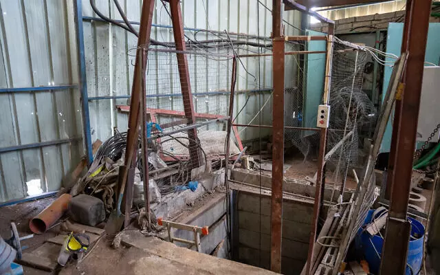 The entrance to a tunnel in a Hamas warehouse