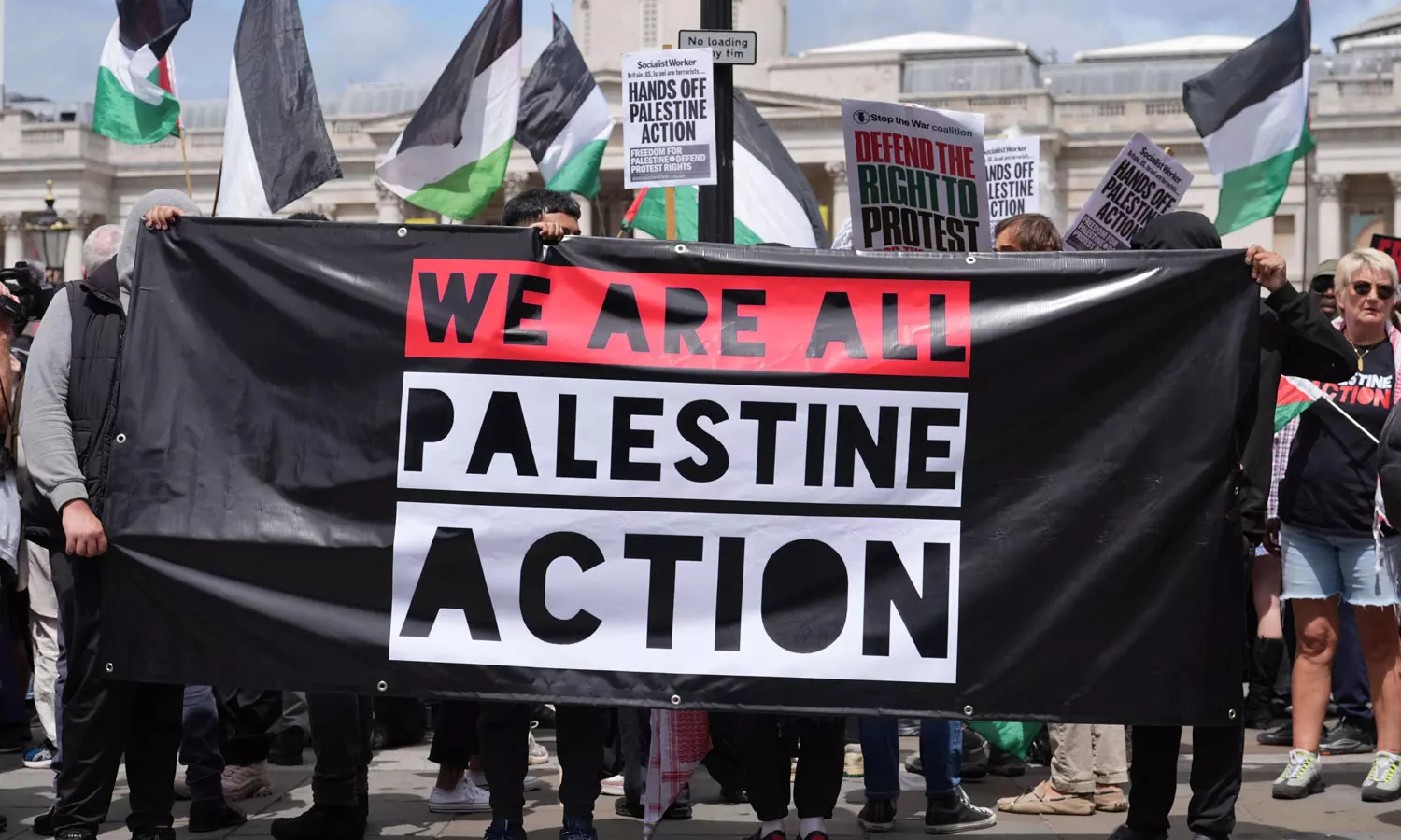 ഐ സപ്പോർട്ട് ഫലസ്തീൻ ആക്ഷൻ എന്നെഴുതിയ പ്ലക്കാർഡുൾപ്പെടെ ഉയർത്തിയായിരുന്നു പ്രതിഷേധം. തുടർന്ന് രാജ്യവ്യാപകമായി ആയിരക്കണക്കിന് പ്രതിഷേധക്കാരെ അറസ്റ്റ് ചെയ്തു. 2700 പേരെയാണ് യുകെ ഭരണകൂടം തീവ്രവാദക്കുറ്റം ചുമത്തി അറസ്റ്റ് ചെയ്തത്. എന്നാൽ, നിരോധന നടപടികൾ അഭിപ്രായ സ്വാതന്ത്ര്യത്തിനും പ്രതിഷേധിക്കാനുള്ള അവകാശത്തിനും മേലുള്ള കടന്നുകയറ്റമാണെന്ന് പൗരാവകാശ വക്താക്കളും സാമൂഹികപ്രവർത്തകരും ചൂണ്ടിക്കാട്ടുന്നു.