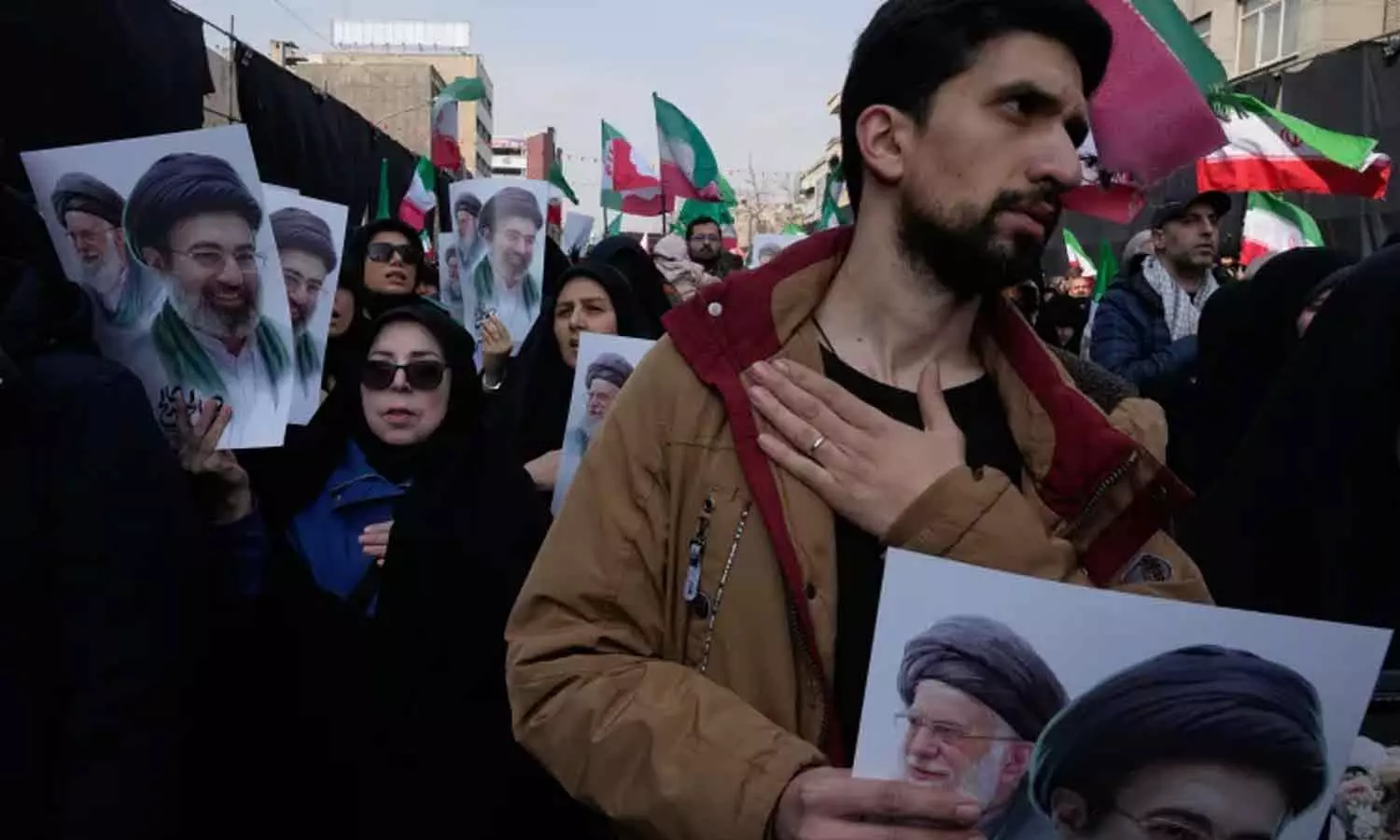 അമേരിക്ക-ഇസ്രായേൽ ആക്രമണത്തില് കൊല്ലപ്പെട്ട മുതിർന്ന ഇറാനിയൻ സൈനിക ഉദ്യോഗസ്ഥരുടെയും സാധാരണക്കാരുടെയും ശവസംസ്കാര ചടങ്ങിൽ പങ്കെടുക്കുന്നവര്